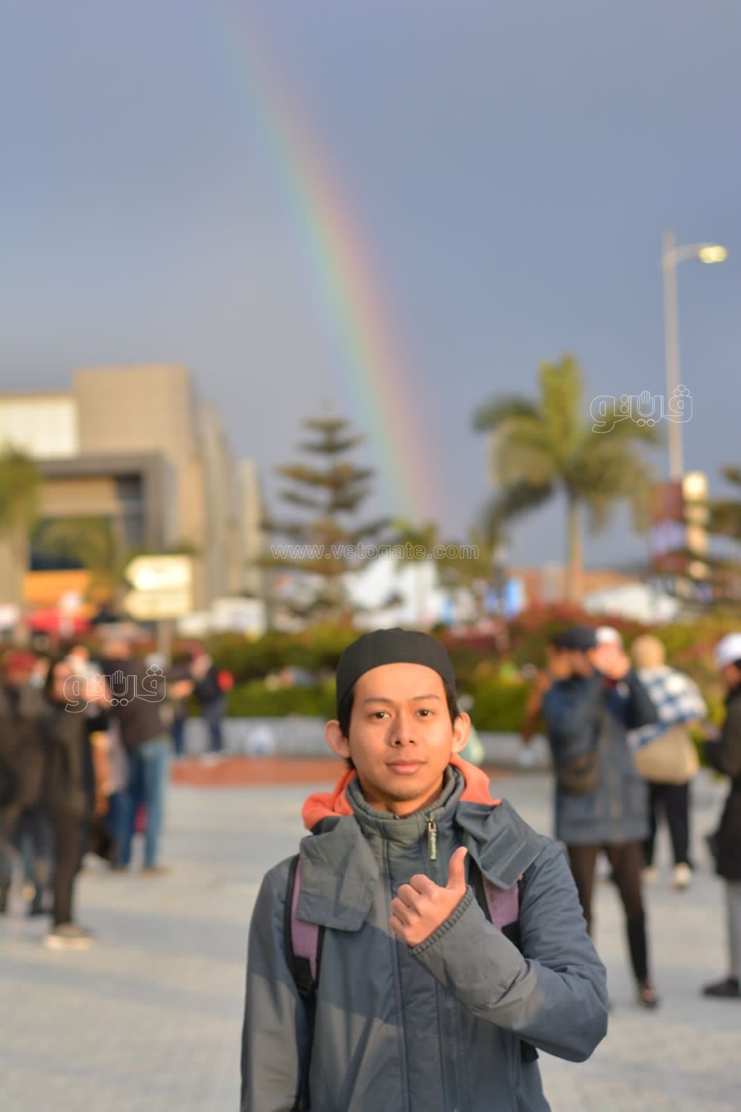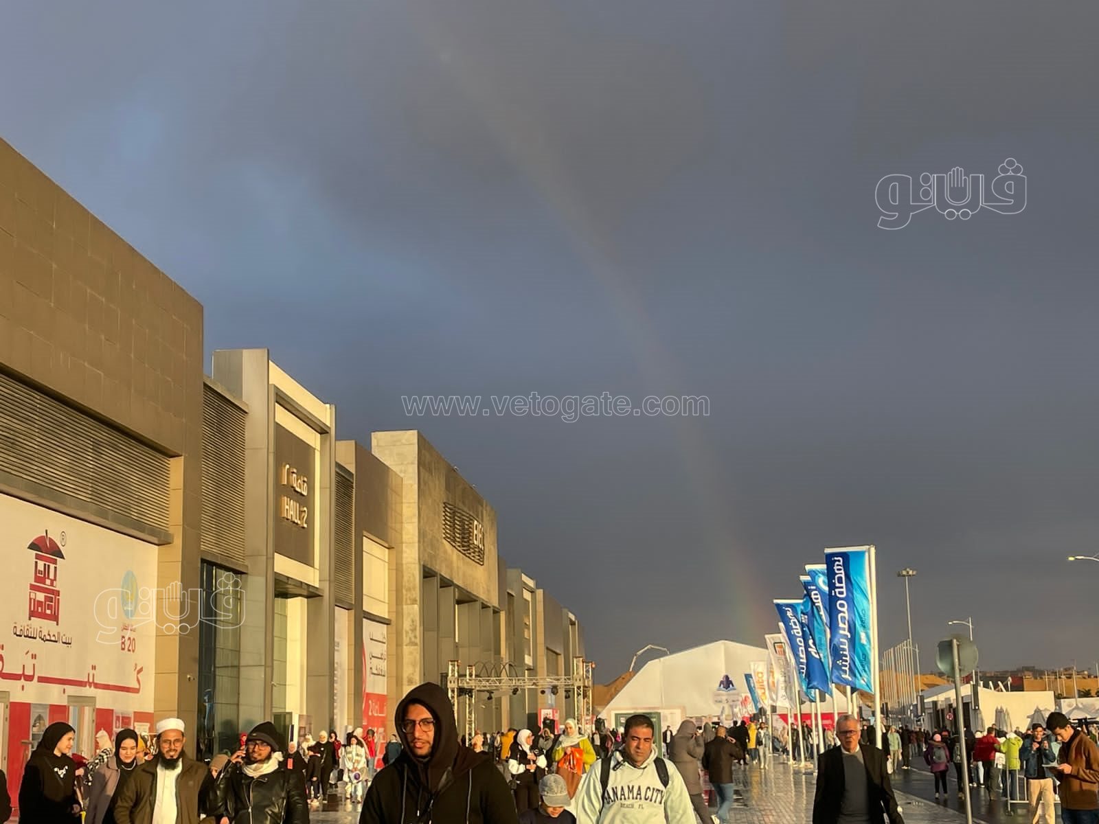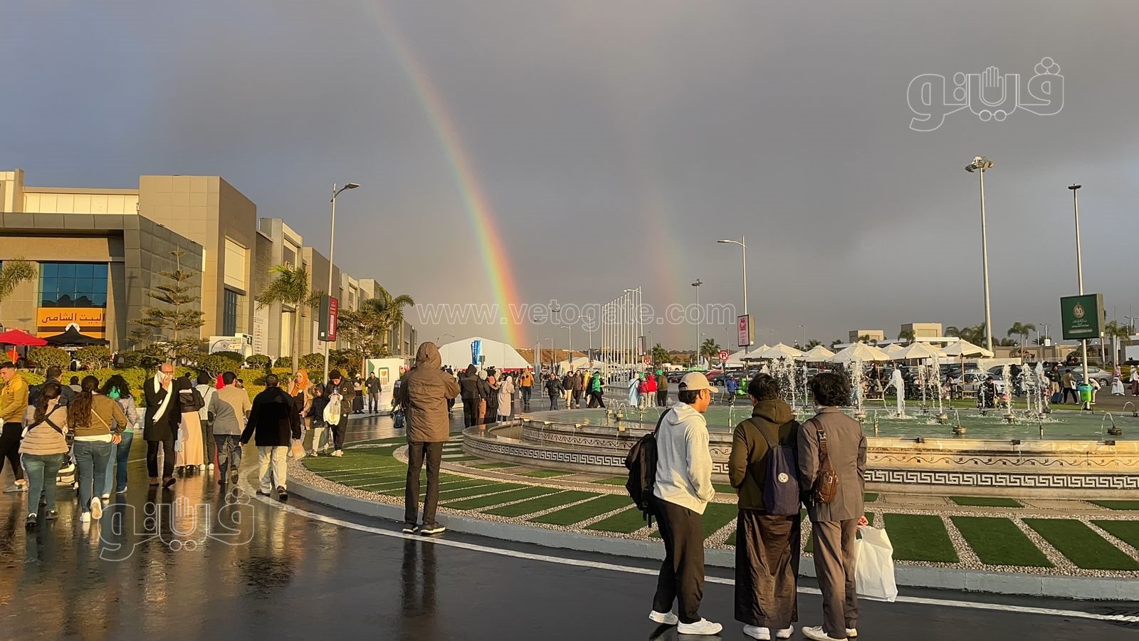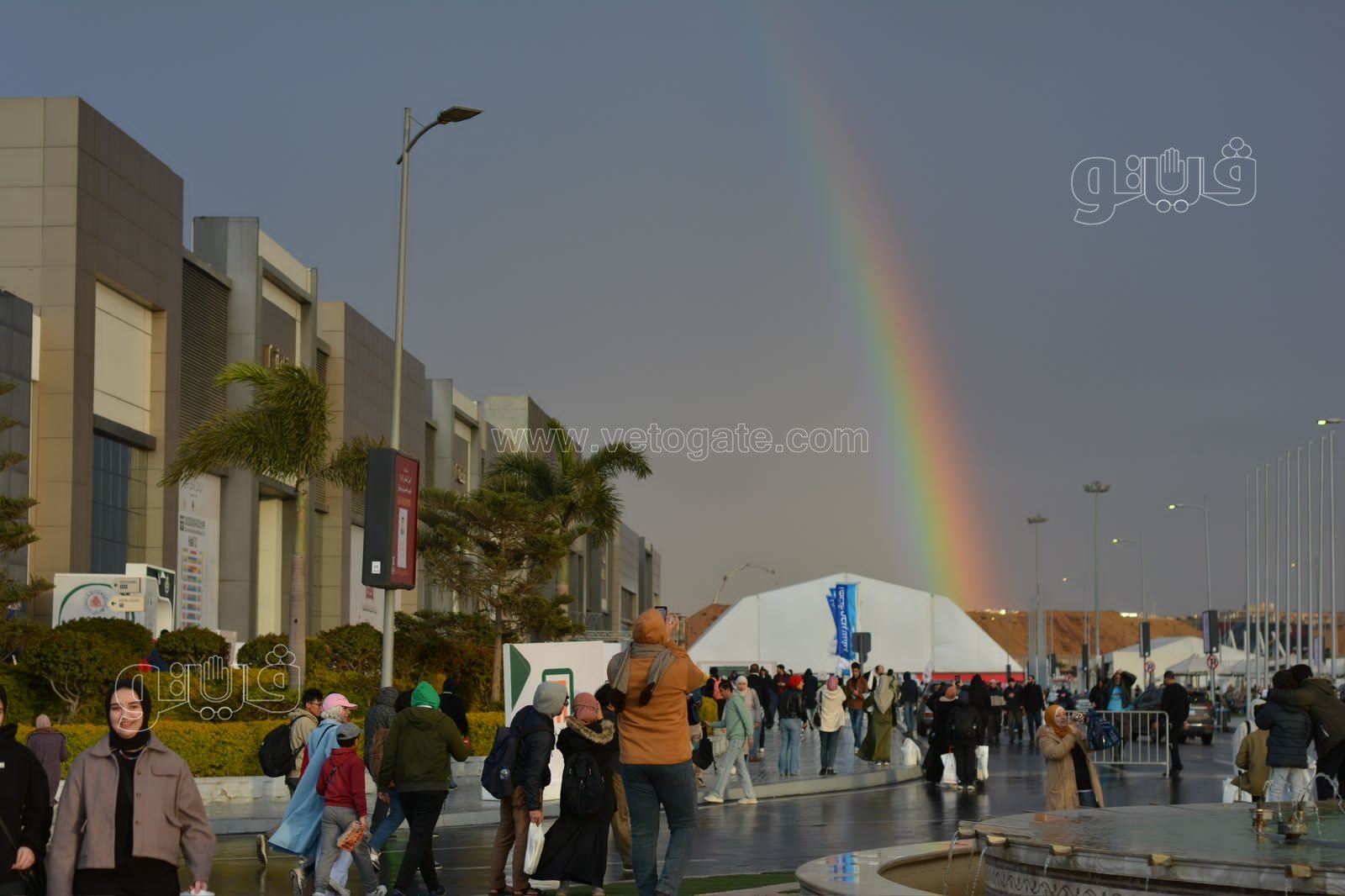 وحرص جمهور وزوار المعرض على التقاط صور تذكارية وسيلفي رفقة أقاربهم وأصدقائهم، وذلك أمام قوس قزح والذي تشكل في سماء المعرض عقب انتهاء الأمطار، وسط حالة من الفرح والبهجة بين الجمهور.