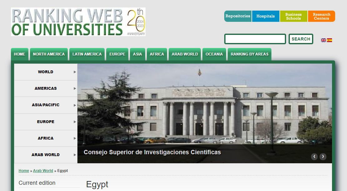 وأشار الدكتور الخشت، إلى أن التصنيف الإسباني يهدف إلى حث الجهات الأكاديمية في العالم لتقديم ما لديها من أنشطة علمية تعكس مستواها العلمي على الإنترنت، فضلا عن أنه يتم نشره مرتين في نهاية شهري يناير ويوليو من كل سنة، بخلاف غالبية التصنيفات العالمية التى تتم مرة فى السنة، موضحا أن التصنيف يعتمد على قياس أداء الجامعات من خلال مواقعها الإلكترونية ضمن معايير تشتمل على: كفاءة وسعة الموقع الالكترونى للجامعة، الروابط والظهور لموقع الجامعة بالمواقع الأخرى (50%)، وعدد البحوث المنشورة بأفضل مجلات عالمية (40%)، وكذلك معدل الاستشهادات ببحوث الجامعة (10%)، طبقا لبيانات جوجل أسكولر (Google scholar) للاستشهادات بالبحوث العالمية.