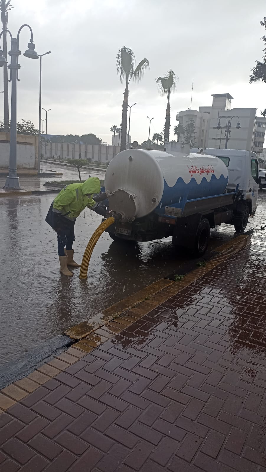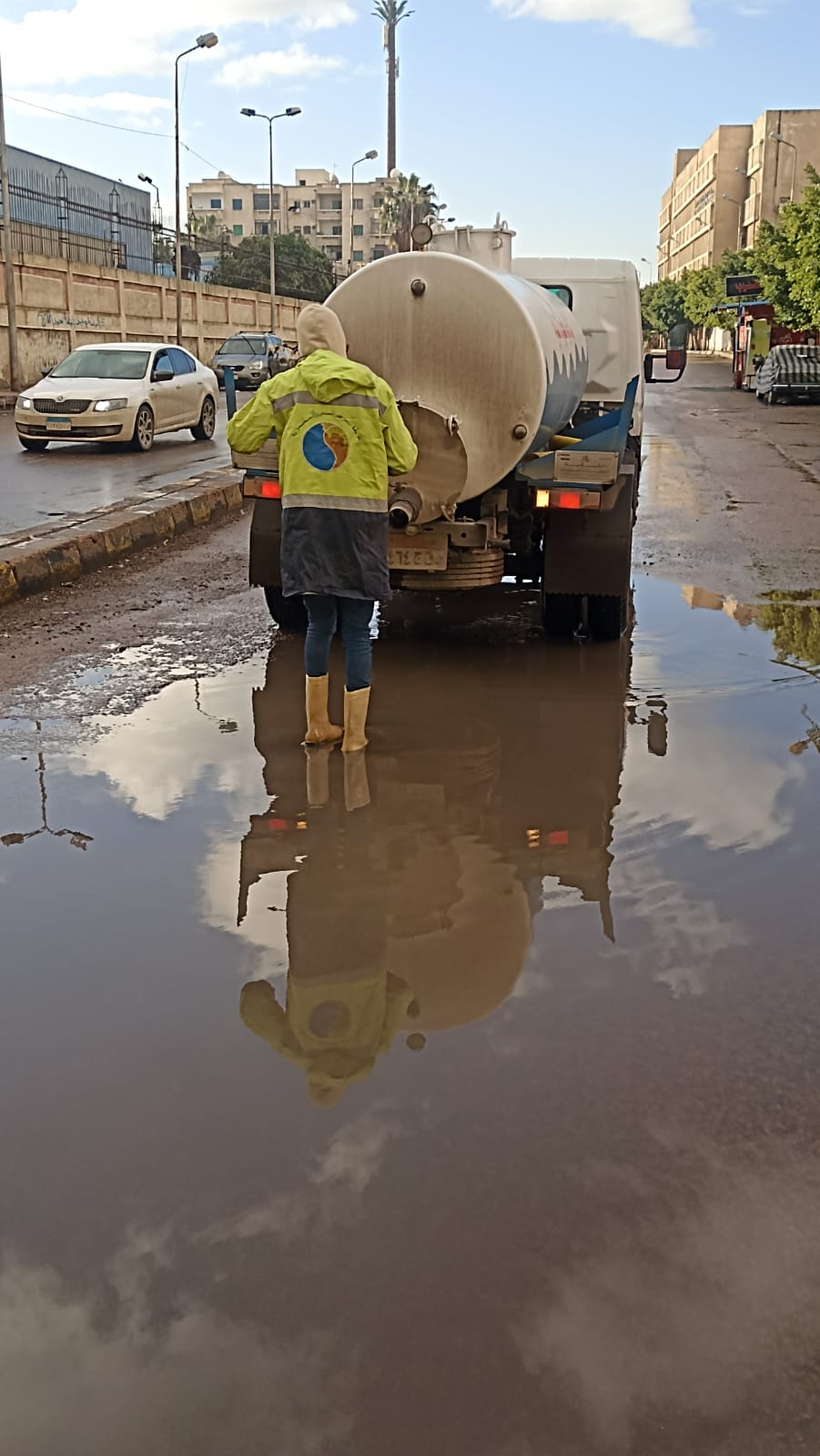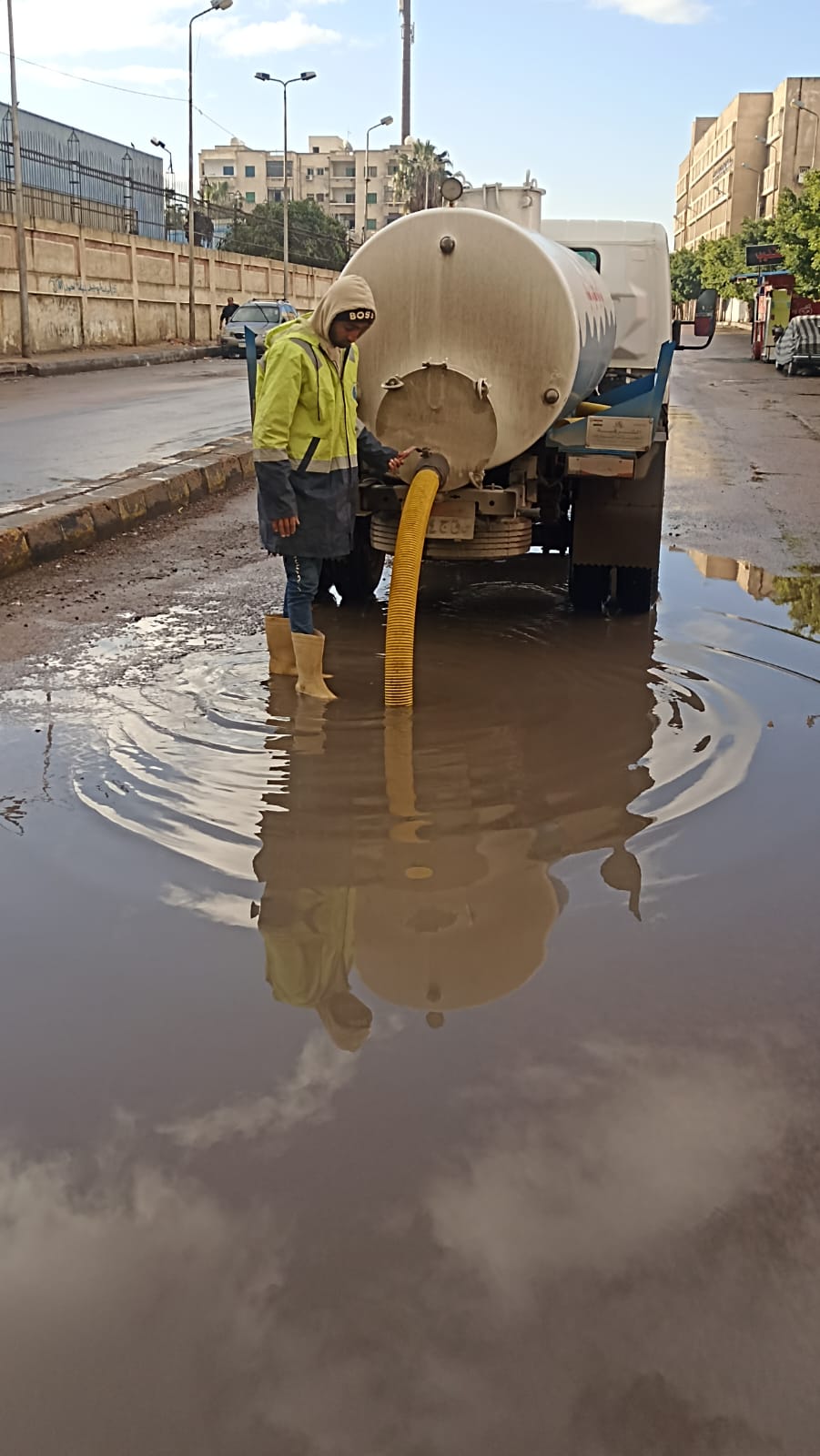 عمال الصرف الصحي بالإسكندرية يواصلون رفع تراكم مياه الأمطار