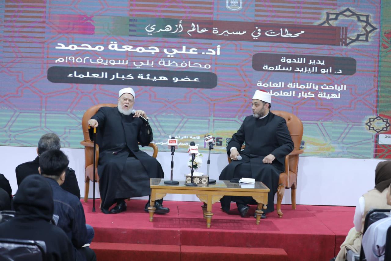 كشف الدكتور علي جمعة، مفتي الديار المصرية السابق، عضو هيئة كبار العلماء بالأزهر الشريف، عن كواليس نشأته وأبرز محطات حياته الدينية والعلمية، خلال حديثه مع الشباب في ندوة "محطات في مسيرة عالم أزهري"، والتي نظمها جناح الأزهر بمعرض القاهرة الدولي للكتاب، وحاوره خلالها الدكتور أبو اليزيد سلامة، الباحث بالأمانة العامة لهيئة كبار العلماء بالأزهر الشريف.