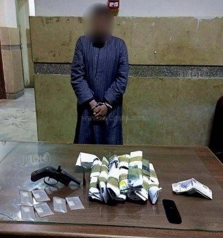 كما تم ضبط (عاطل "له معلومات جنائية" – مقيم بدائرة مركز شرطة القرنة).. وبحوزته (كيلو جرام لمخدر الحشيش - كمية من مخدر الهيروين – فرد محلى وطلقة - مبلغ مالى "متحصلات بيع المواد المخدرة").