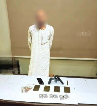 فى مديرية أمن الجيزة؛ تم ضبط (عاطل "له معلومات جنائية" – مقيم بدائرة مركز شرطة العياط).. وبحوزته (3 كيلو جرامات لمخدر الحشيش – بندقية آلية – عدد من الطلقات - مبلغ مالى "متحصلات بيع المواد المخدرة").
