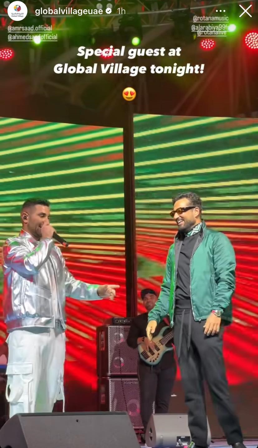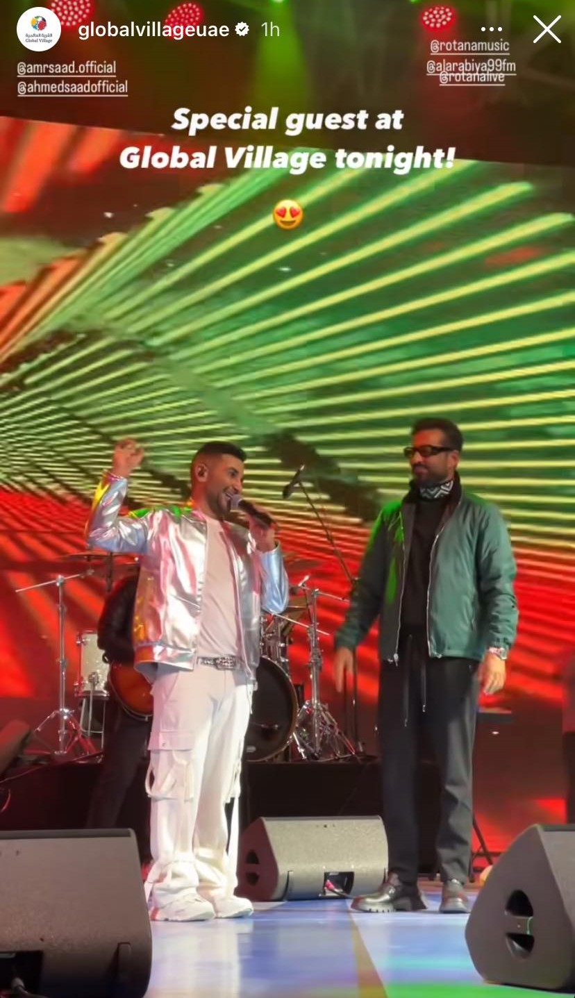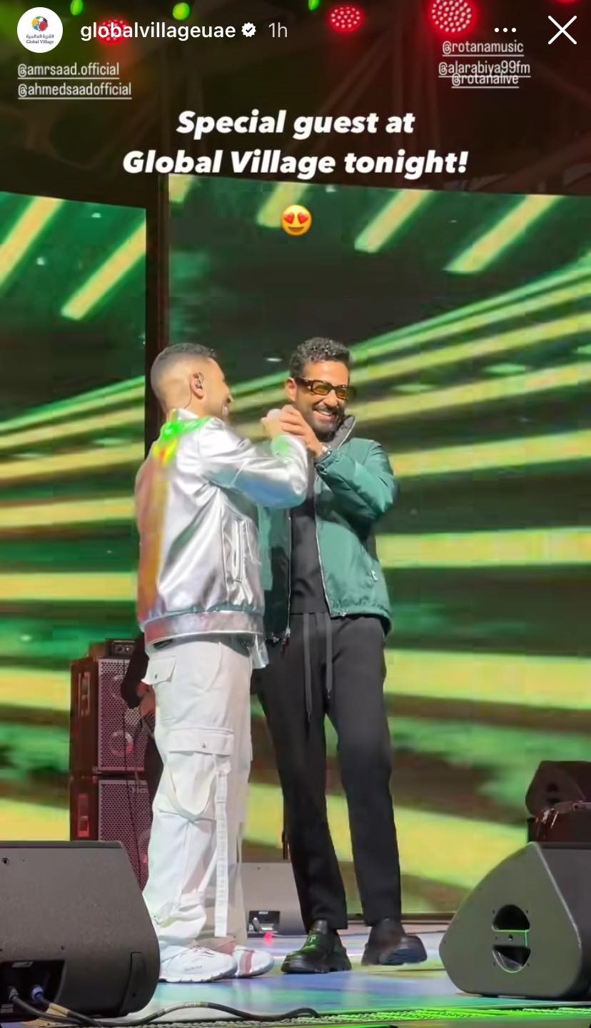 عمرو سعد يفاجئ شقيقه أحمد على المسرح أثناء حفله في دبي (صور)