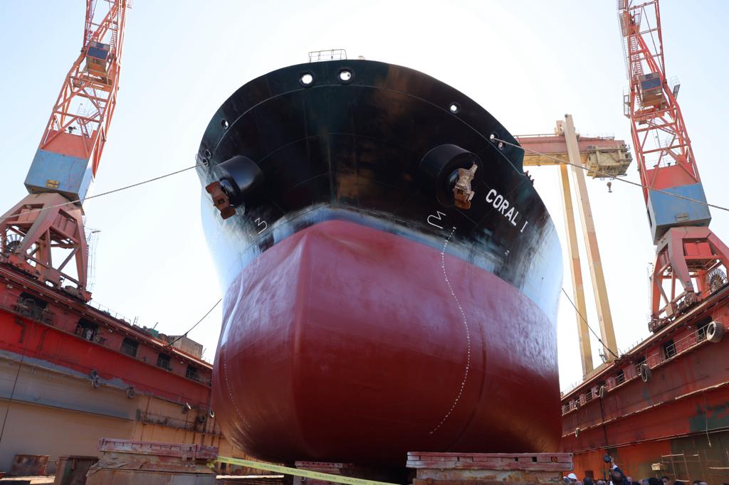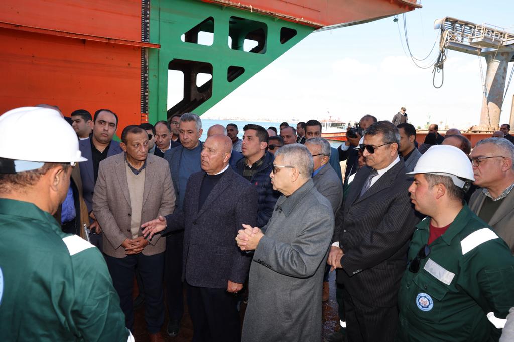 كما شملت الجولة التفقدية تفقد الحوض العائم حمولة ٥٥ ألف طن، والذي يستقبل في الوقت الحالي سفينة البضائع "CORAL I" لإتمام أعمال الصيانة والإصلاح اللازمة لتجديد شهادات صلاحية الإبحار.
