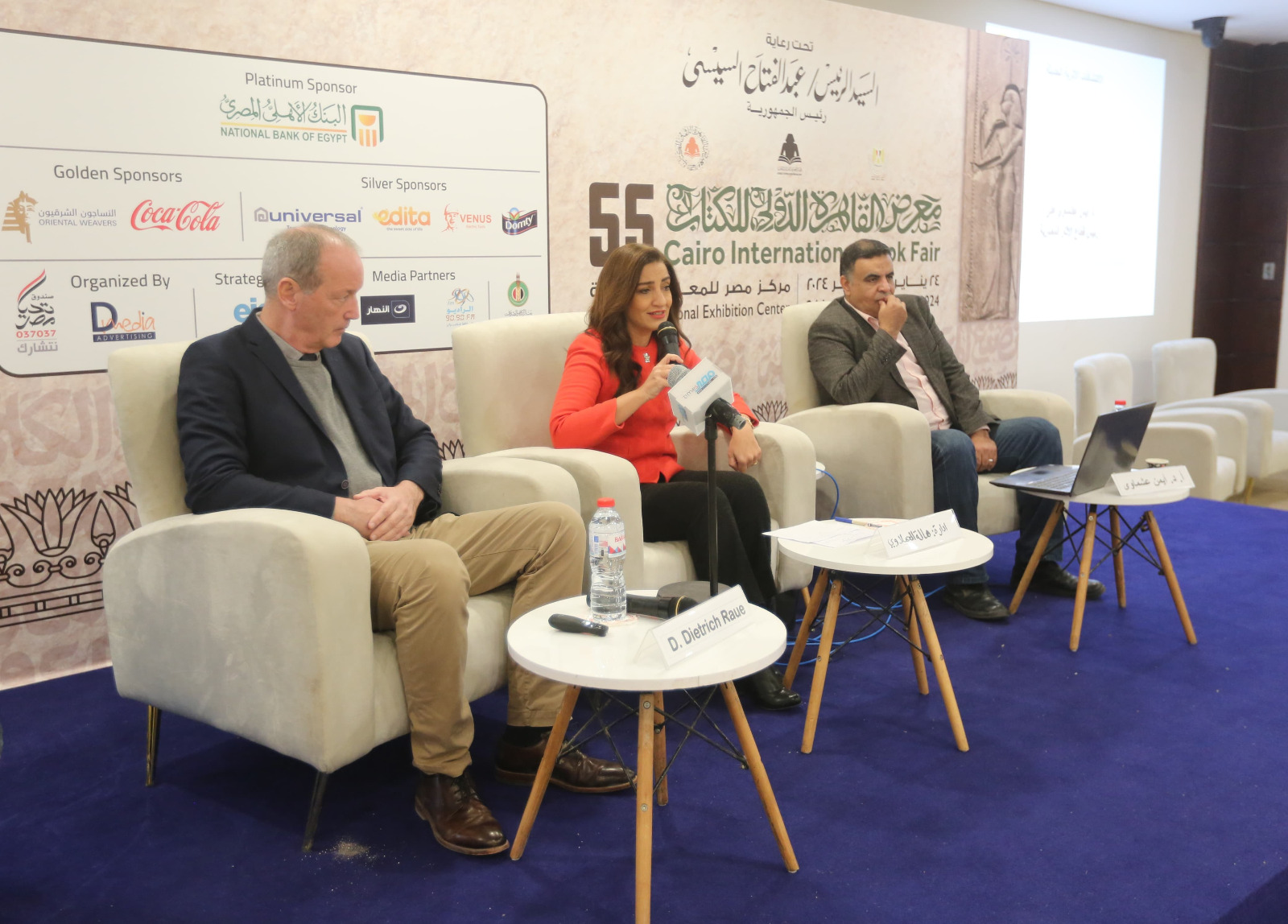 استضافت القاعة الرئيسية بمعرض القاهرة الدولي للكتاب في دورته الـ55، ندوة بعنوان “الاكتشافات الأثرية ودور المعهد الألماني في مصر”، ضمن محور الخروج إلى النور “الحضارة”، تحدث خلالها الدكتور أيمن عشماوي، رئيس قطاع الآثار المصرية واليونانية والرومانية بالمجلس الأعلى للآثار، والدكتور ديتريش روا أستاذ الآثار بجامعة ليزبرج بألمانيا ومدير عام المعهد الألماني للآثار، وأدارت الندوة نهى توفيق.