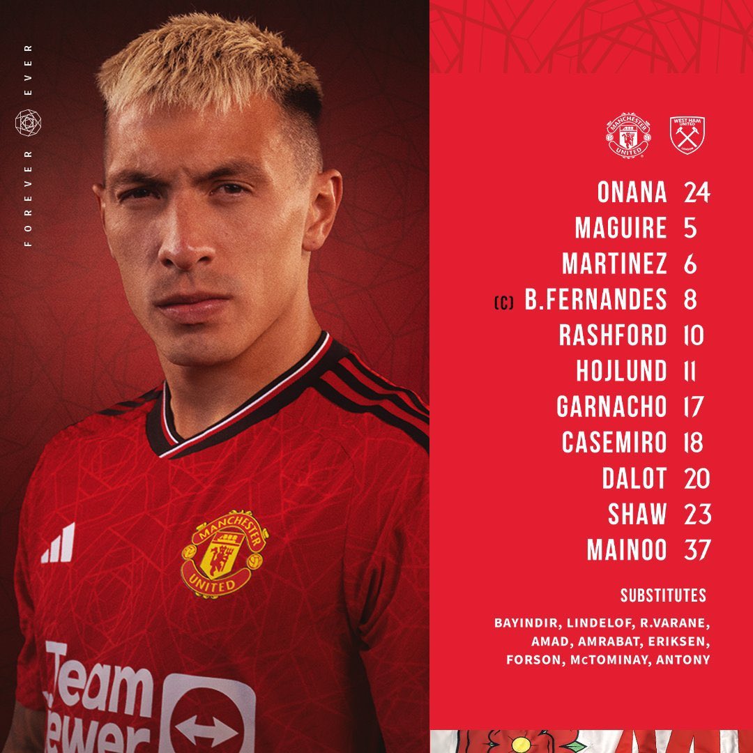 كشف أريك تين هاج المدير الفني لفريق مانشستر يونايتد عن تشكيل فريقه لمواجهة وست هام يونايتد، في إطار منافسات الدوري الإنجليزي الممتاز.