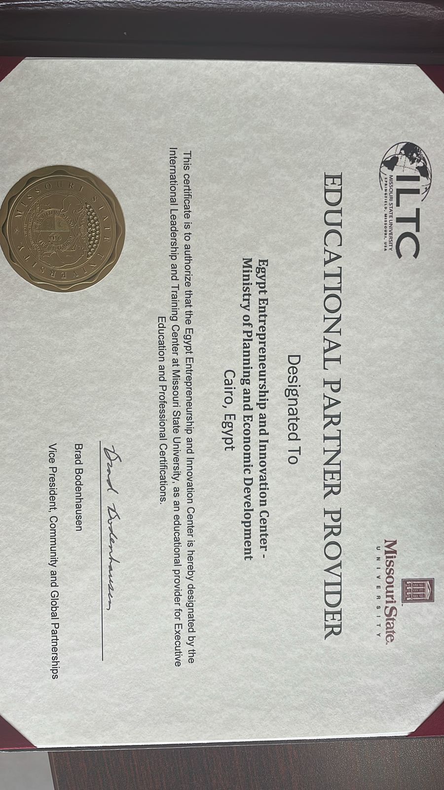 مركز مصر لريادة الأعمال يحصل على شهادة الشراكة التعليمية من جامعة ميزوري الأمريكية