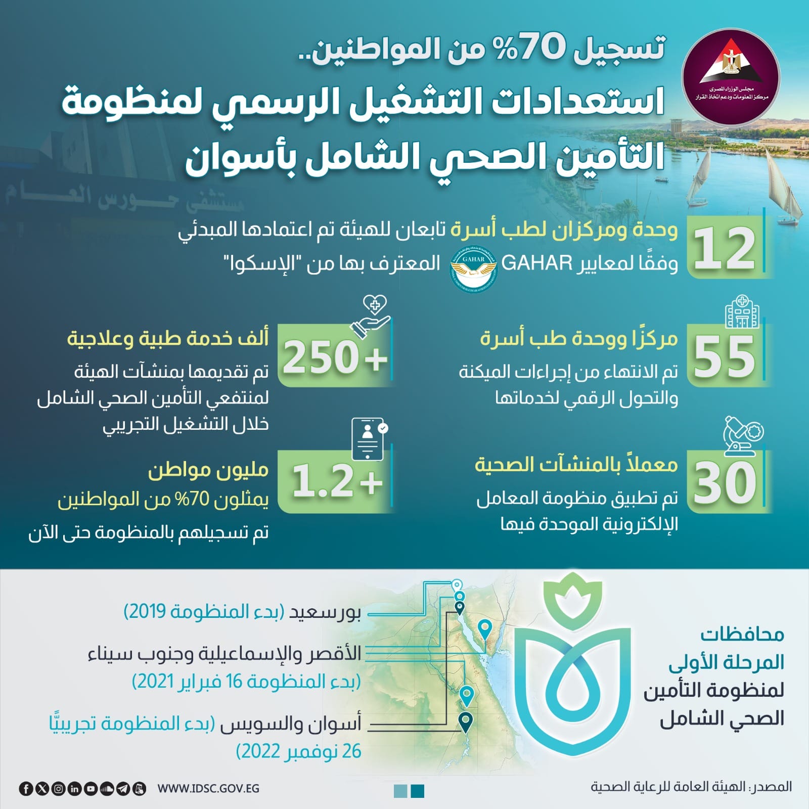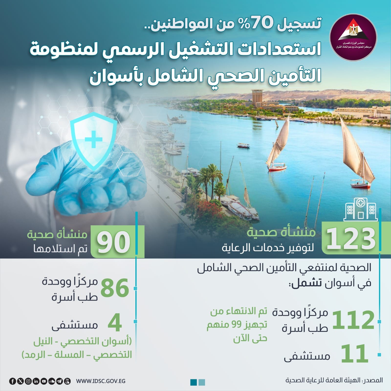 استعدادات التشغيل الرسمي لمنظومة التأمين الصحي الشامل بأسوان (انفوجراف)