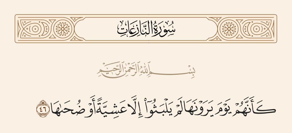 واستشهد الشيخ بقول الله تعالى في سورة النازعات: «كَأَنَّهُمْ يَوْمَ يَرَوْنَهَا لَمْ يَلْبَثُوا إِلا عَشِيَّةً أَوْ ضُحَاهَا» (الآية: 46).