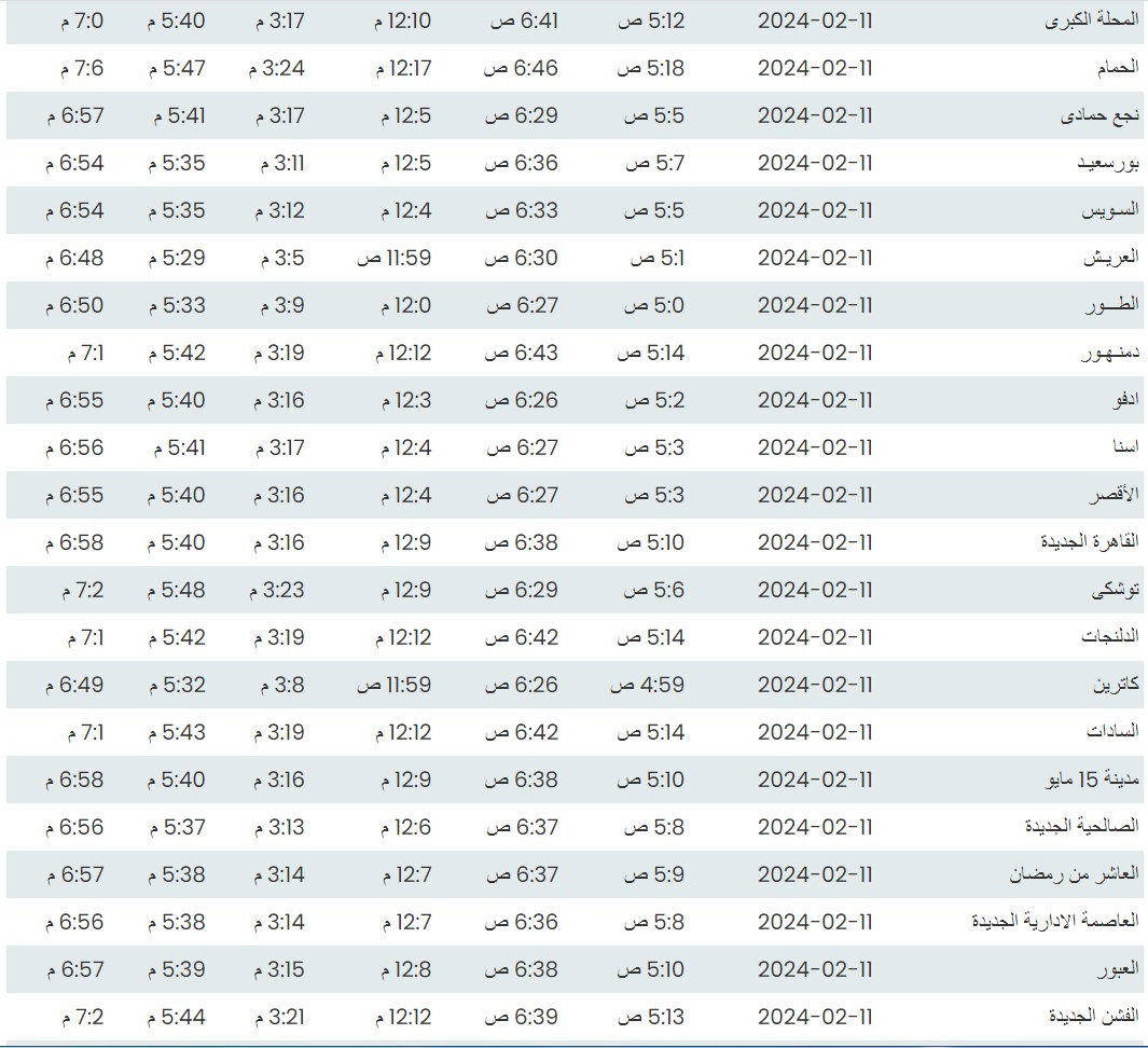وفيما يلي مواقيت الصلاة، لعدد من مدن ومحافظات الجمهورية من واقع بيانات الهيئة العامة للمساحة
