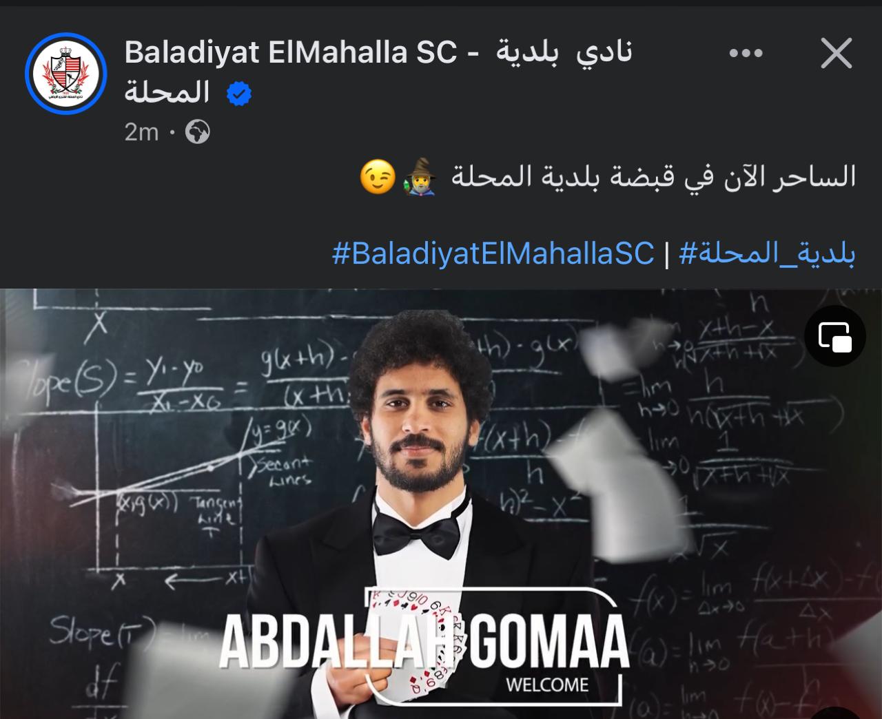 وأعلن النادي عن الصفقة عبر الصفحة الرسمية علي فيسبوك بنشر فيديو للاعب معلقه "الساحر الآن في قبضة بلدية المحلة".