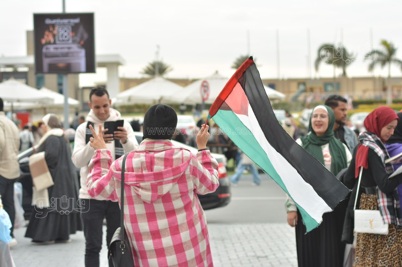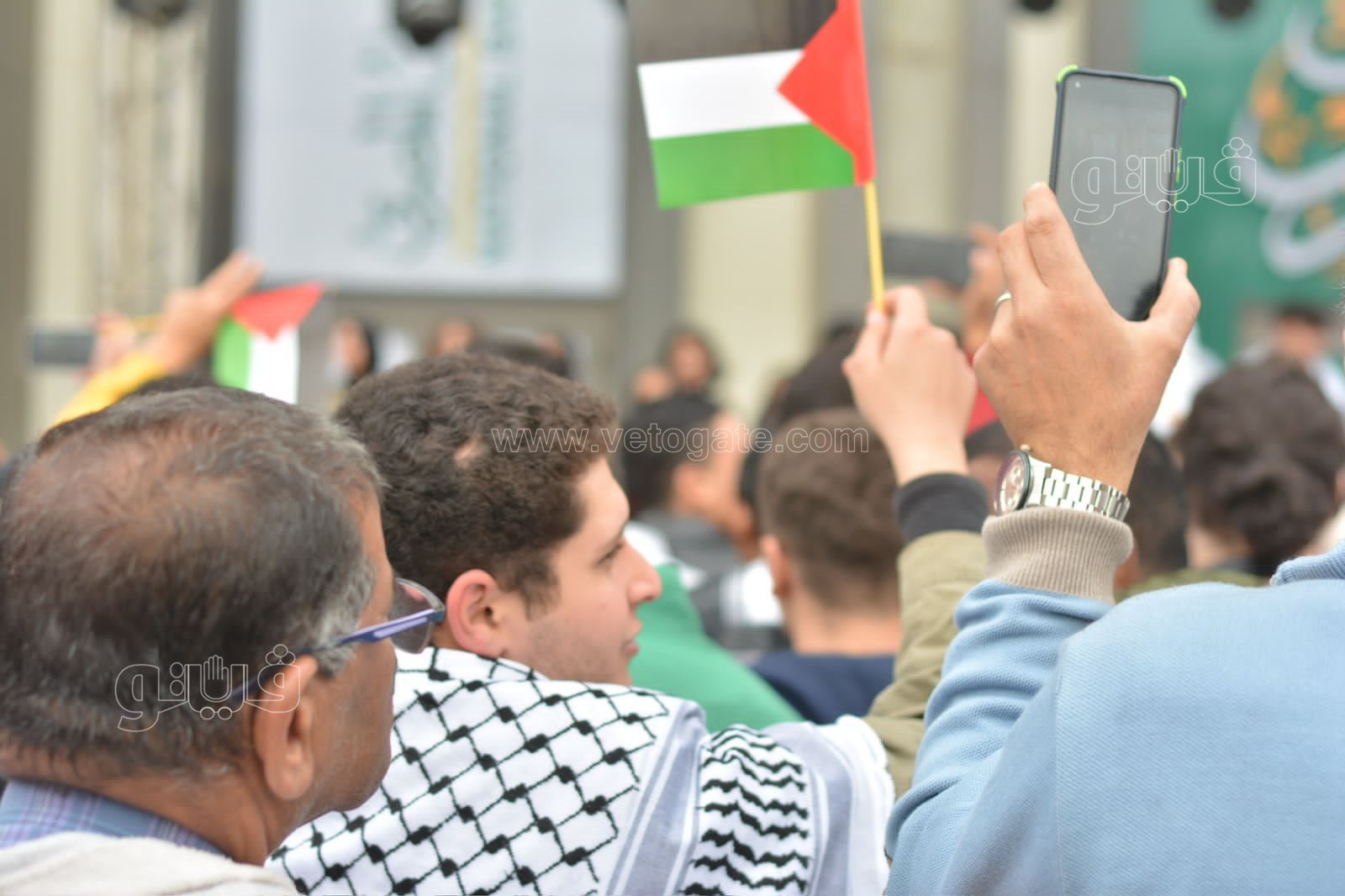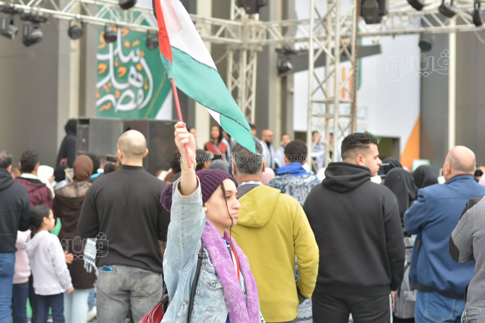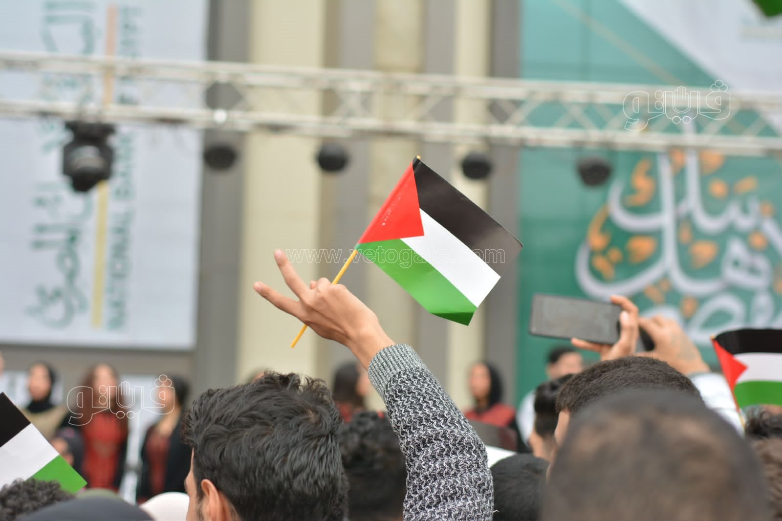 ورفع الجمهور الذي التف حول المسرح الأعلام الفلسطينية، تعبيرا عن تضامنهم مع القضية الفلسطينية، ومع الشعب الفلسطيني فيما يواجهه من عدوان اسرائيلي غاشم.