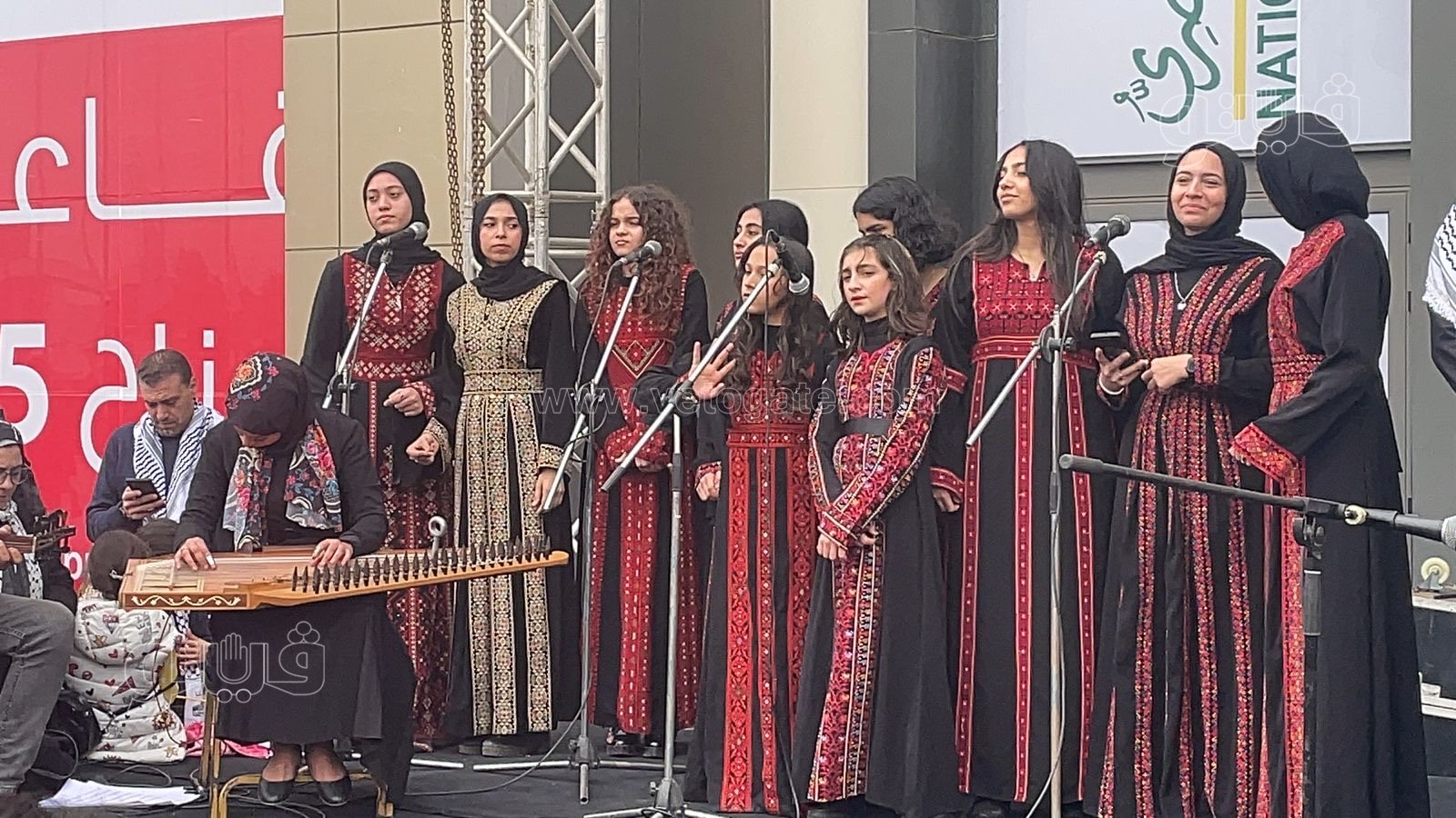 وتألق الكورال بروائع التراث والأغاني الوطنية الفلسطينية ومنها: "ما بنرحل"، "وين ع رام الله"، و"غزة"، وغيرها، حيث تفاعل جمهور وزوار المعرض مع الفرقة في مشهد مميزة.