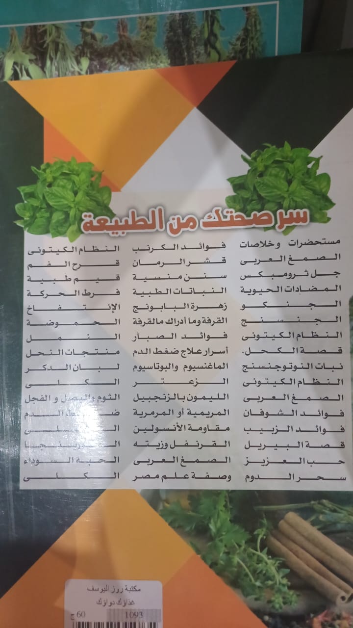 إذ يُعرض له بالمعرض إصدارات أبرزها؛ الصحة والغذاء وغذاؤك دواؤك، ويأتي سعر الإصدار بستين جنيها.