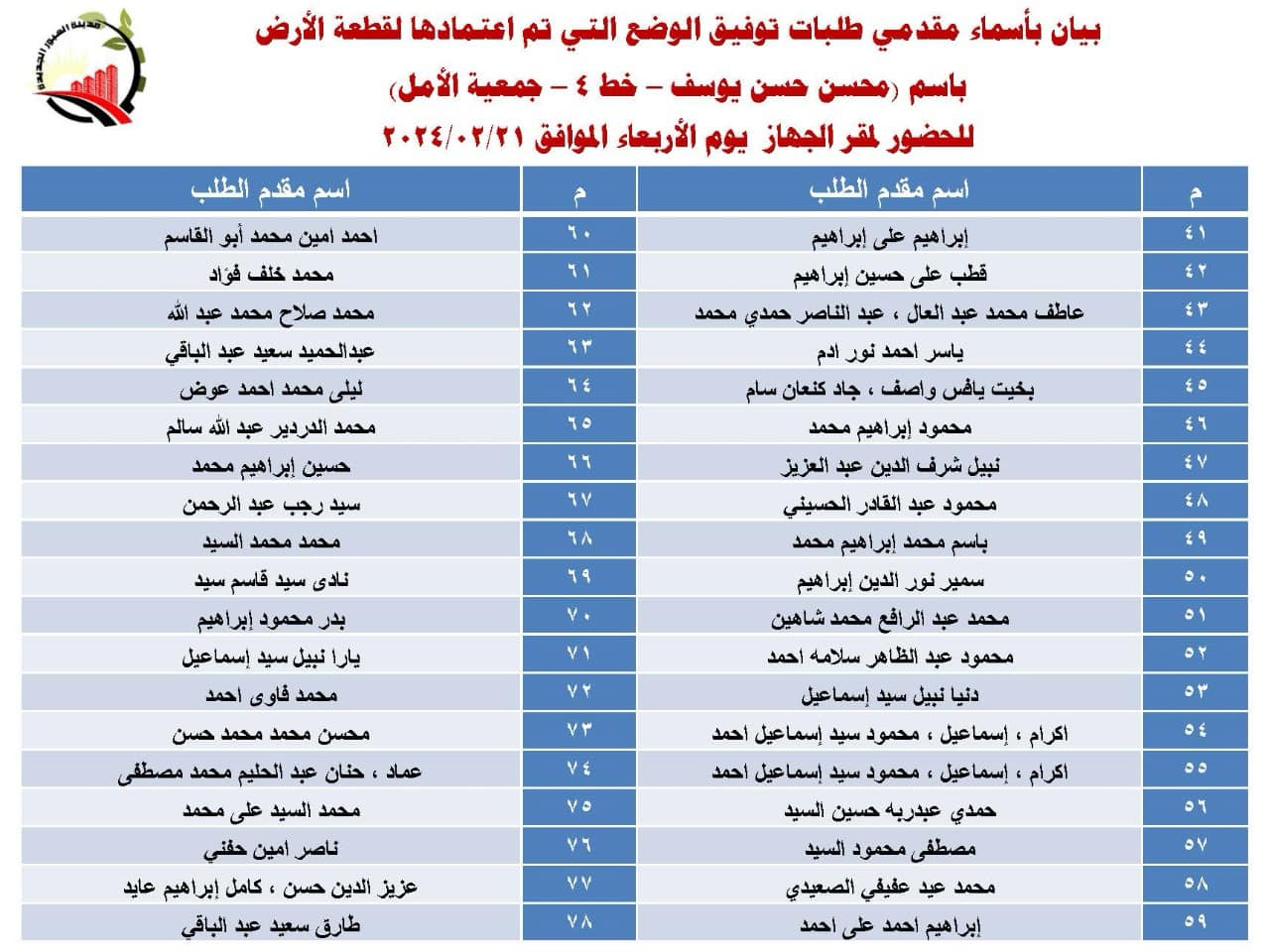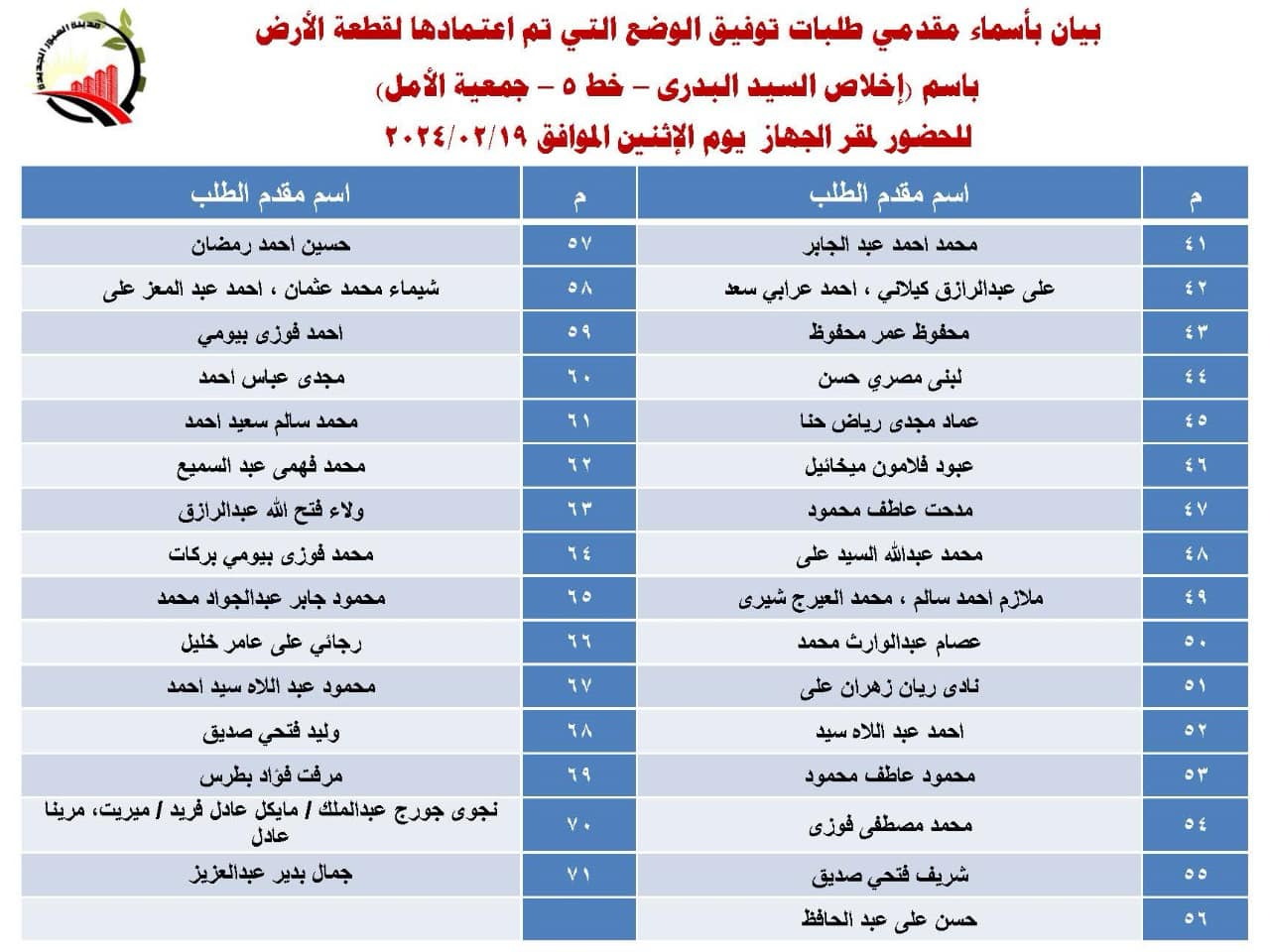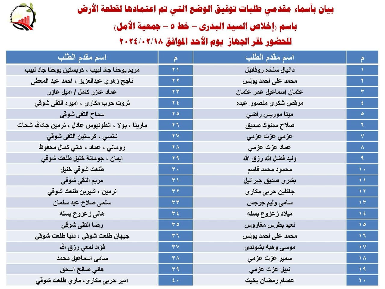 أعلن جهاز مدينة العبور الجديدة أسماء دفعة جديدة من المواطنين، الذين تم اعتماد توفيق الأوضاع لأراضيهم التابعة للمدينة.