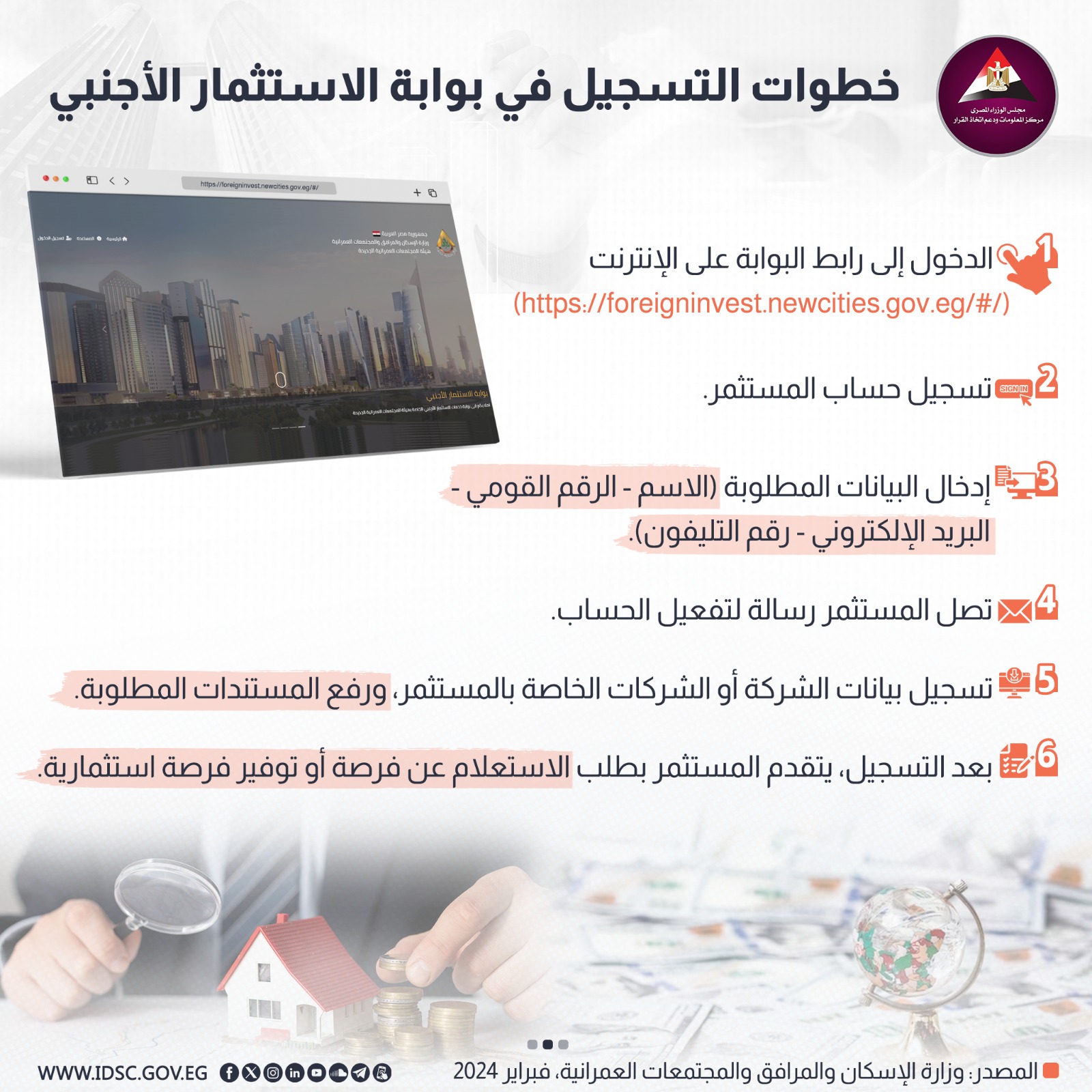 معلومات الوزراء تعلن إطلاق "بوابة الاستثمار الأجنبي" لدعم الاستثمار وتيسير الإجراءات (انفوجراف)