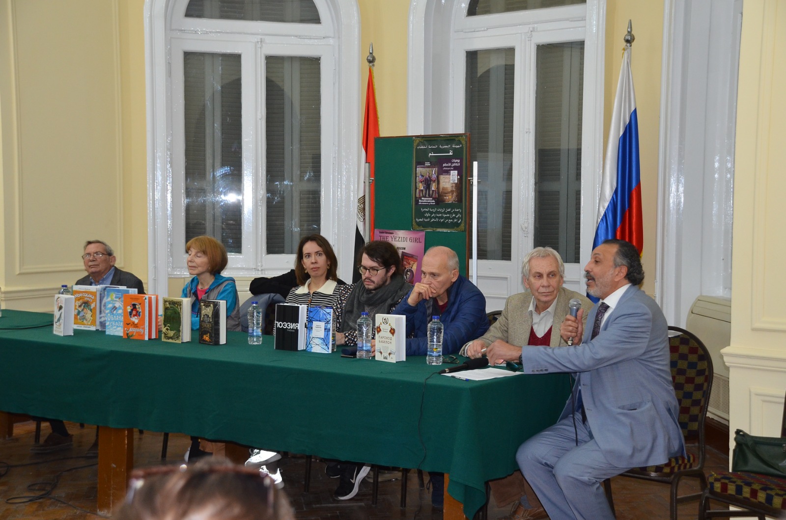 نظم البيت الروسي بالقاهرة بالتعاون مع الجمعية المصرية لخريجي الجامعات الروسية والسوفيتية ندوة لوفد الكتاب الروس المشارك في معرض القاهرة للكتاب أدارها شريف جاد مدير النشاط الثقافي بالمركز الروسي ورئيس جمعية خريجي الجامعات الروسية والسوفيتية، حيث افتتح الندوة مراد جاتين مدير المراكز الثقافية الروسية في مصر مؤكدا أن الفرصة لدينا اليوم للتعرف اكثر على الجديد فى الأدب الروسي من خلال اعمال ضيوفنا.