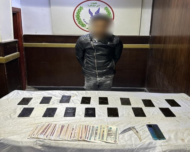 كما ضبط (عاطل " له معلومات جنائية") بدائرة قسم شرطة دار السلام.. وبحوزته (1,500 كيلو جرام لمخدر الحشيش – مبلغ مالى "متحصلات بيع المواد المخدرة" – سلاح أبيض "مطواة").