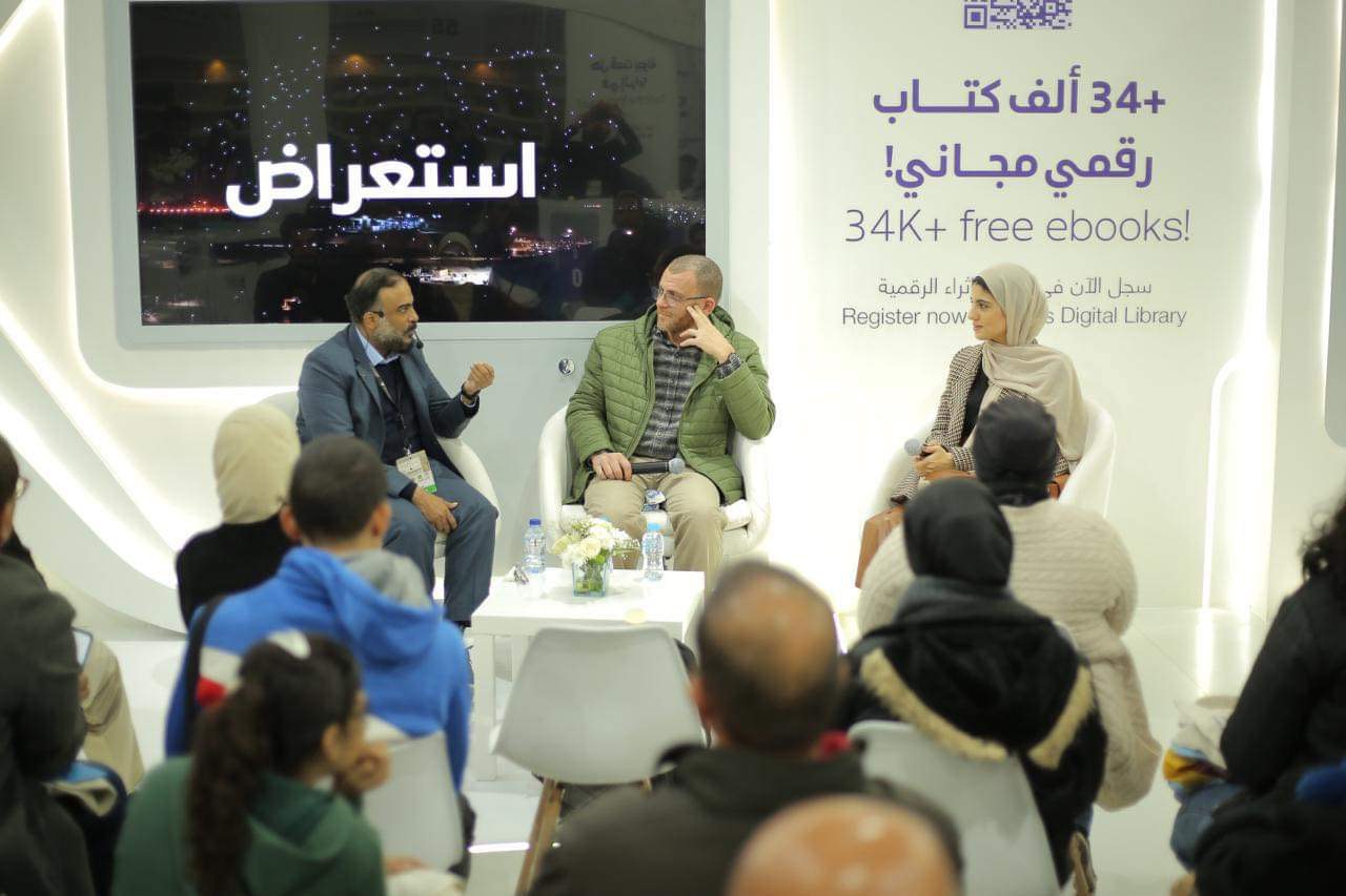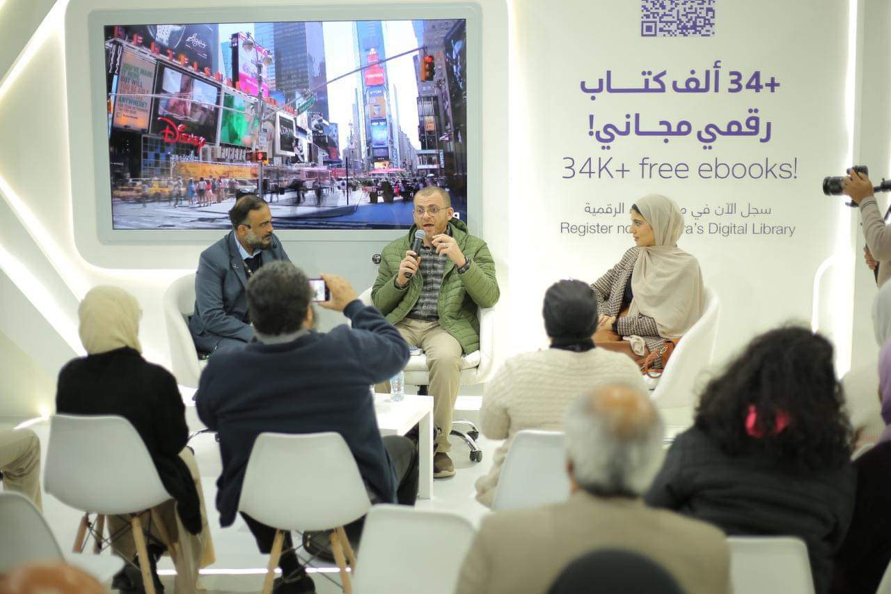 ونظم المركز جلسة حوارية بعنوان "حكاية اقرأ.. تجربة تعاش لتروى"، لتعريف زوار المعرض، بمسابقة اقرأ التي فتحت باب المشاركة لطلبة الدول العربية، حيث استضافت الجلسة المشاركين في النسخة الماضية للحديث عن تجربتهم في مسابقة أقرأ.