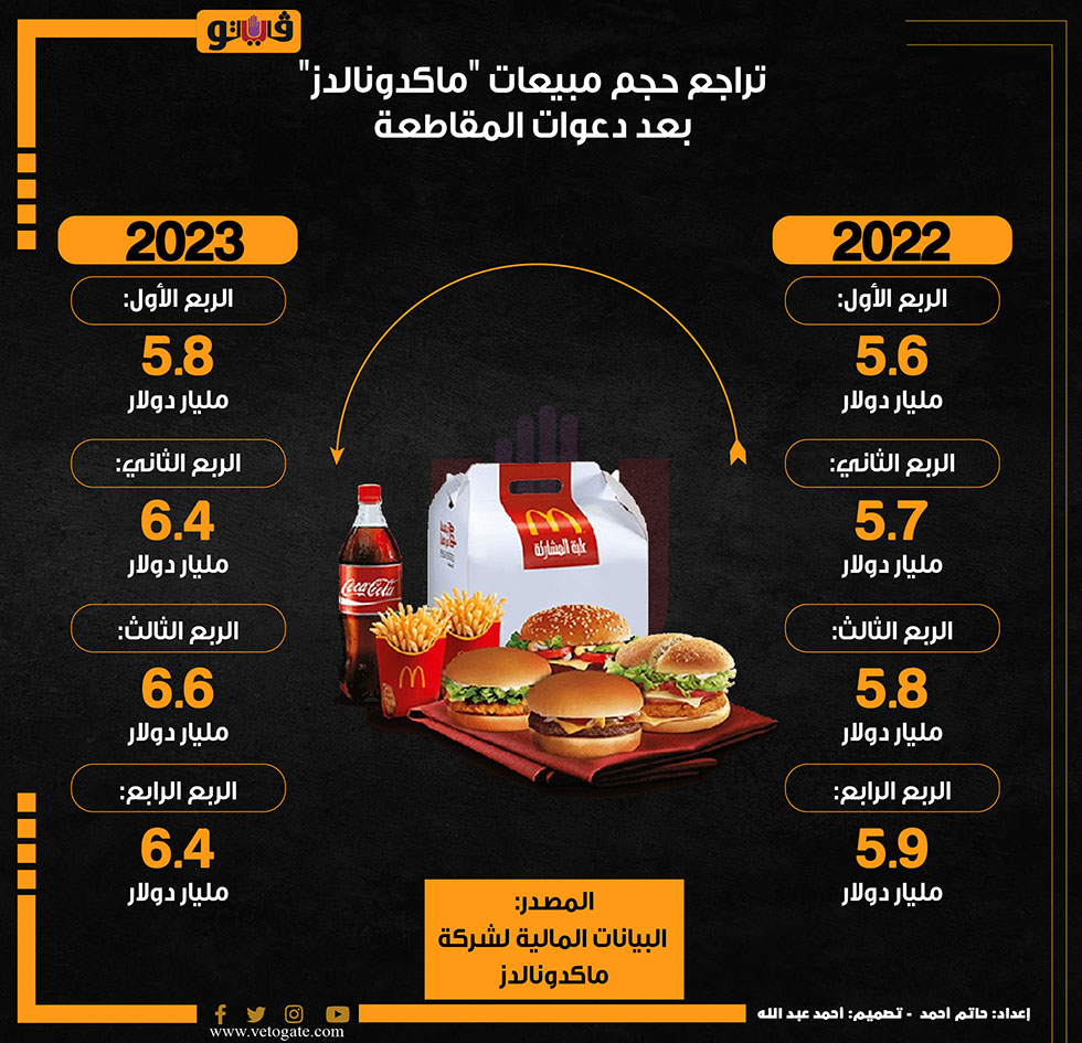 تراجع حجم مبيعات "ماكدونالدز" بعد دعوات المقاطعة (إنفوجراف) الأربعاء 07/فبراير/2024 - 12:03 م 2/7/2024 12:03:04 PM شركة ماكدونالدز، فيتو حاتم أحمد شارك طباعة 18 حجم الخط شارك طباعة ماكدونالدز مبيعات شركة ماكدونالدز شركة ماكدونالدز سهم ماكدونالدز انخفاض مبيعات شركة ماكدونالدز غزة مقاطعة ماكدونالدز