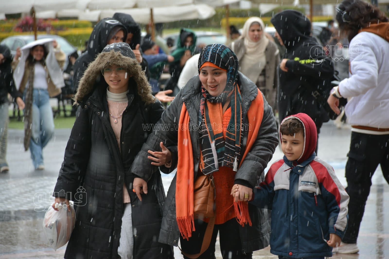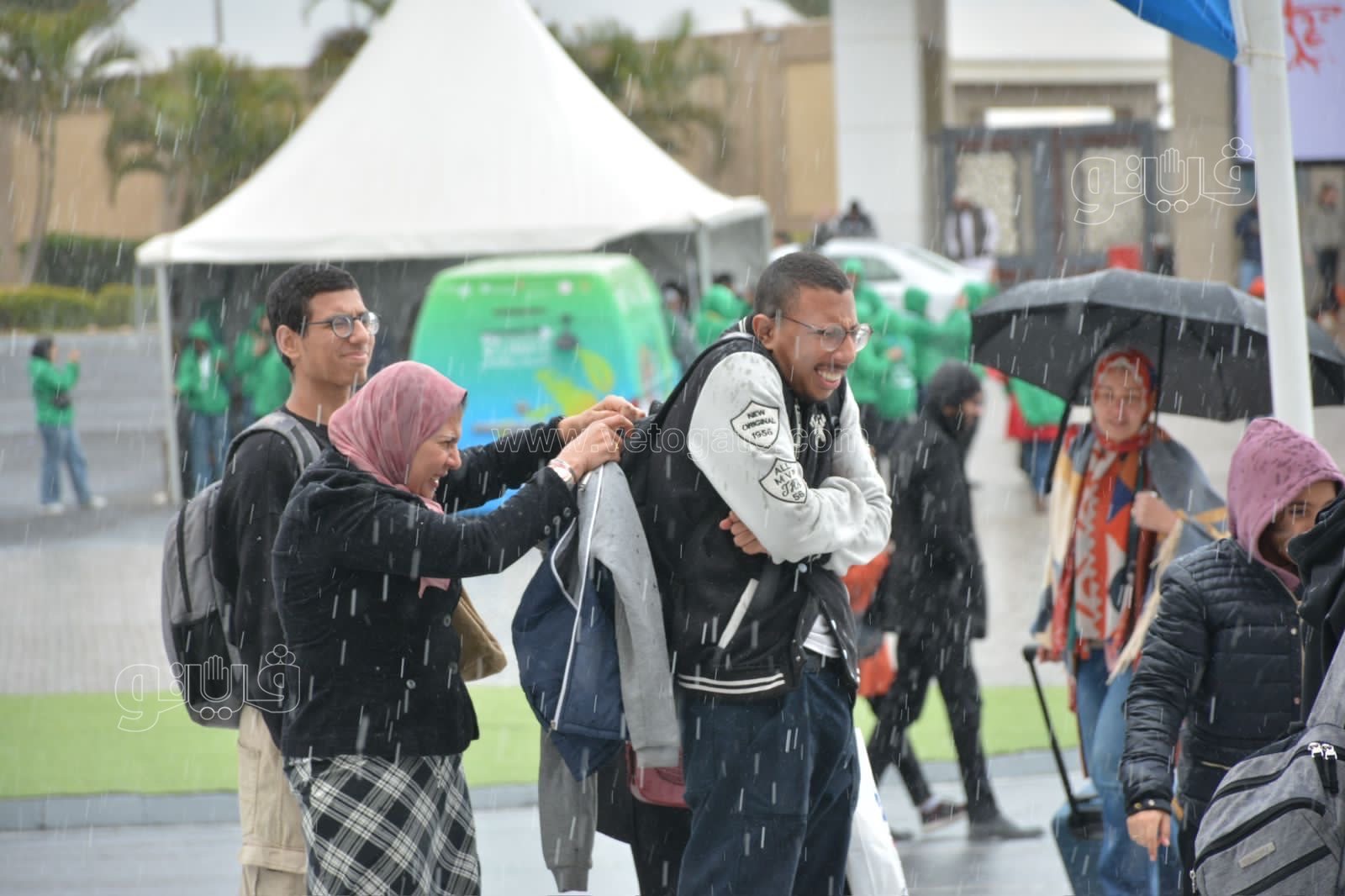 وفور تساقط الأمطار، استخدم جمهور وزوار المعرض المظلات الشخصية، و"الكوفيات" للحماية من الأمطار، فيما قرر آخرون الدخول لقاعات المعرض المختلفة وقتها حتى تنتهي الأمطار.