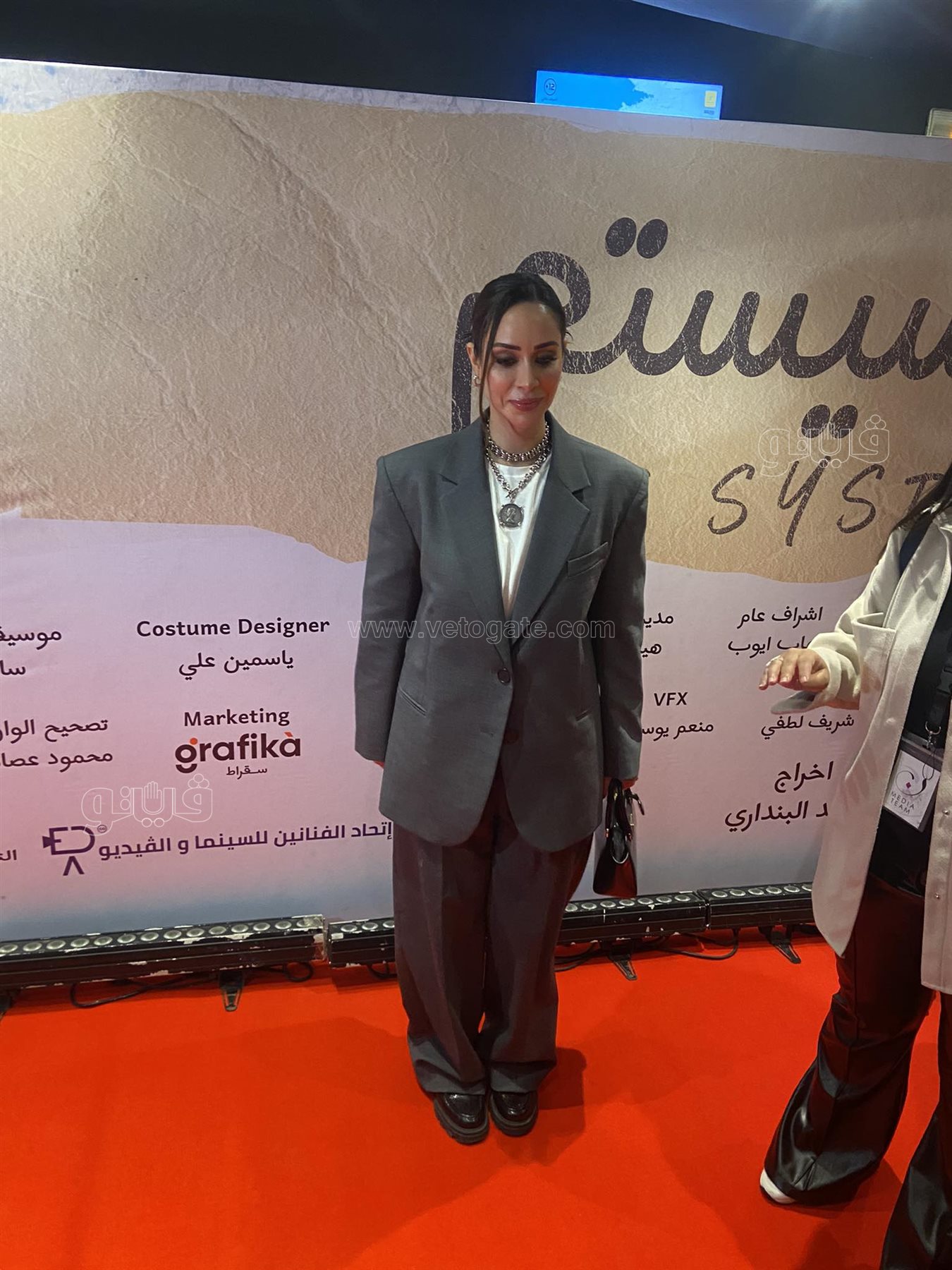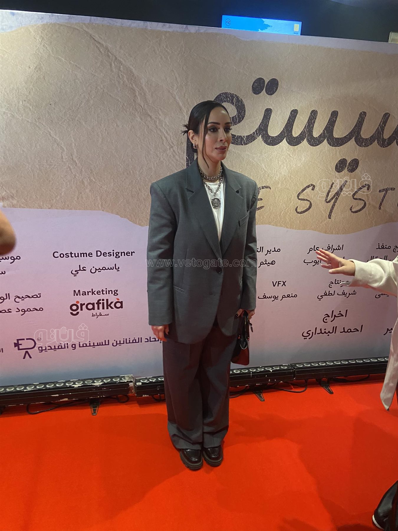 بسنت شوقي بالبدلة في العرض الخاص لفيلم السيستم (صور)