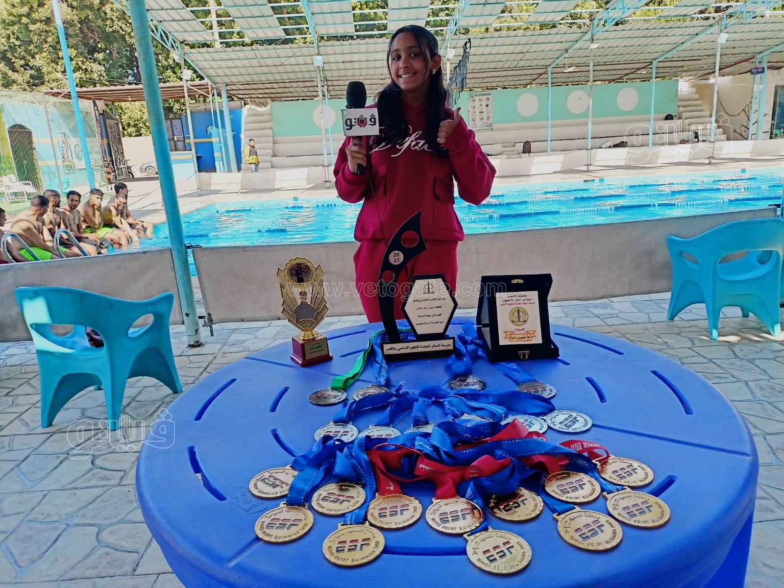 12 ميدالية ذهبية و10 فضية، جودي أصغر سباحة بالأقصر حطمت رقما قياسيا بالبطولة الشتوية