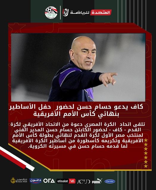 حسام حسن، تلقى اتحاد الكرة المصري دعوة من الاتحاد الأفريقي لكرة القدم - كاف - لحضور الكابتن حسام حسن المدير الفني لمنتخب مصر الأول لكرة القدم لنهائي بطولة كأس الأمم الأفريقية، وتكريمه كأسطورة من أساطير الكرة الأفريقية لما قدمه حسام حسن في مسيرته الكروية.