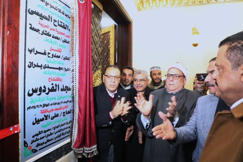 تقدم المحافظ بأجمل التهاني وأطيب التمنيات لأبناء مدينة الزقازيق بمناسبة افتتاح المسجد وتهيئته لاستقبال المصلين وإقامة الشعائر الدينية وتعليم وتعلم مفاهيم الدين السمحة.
