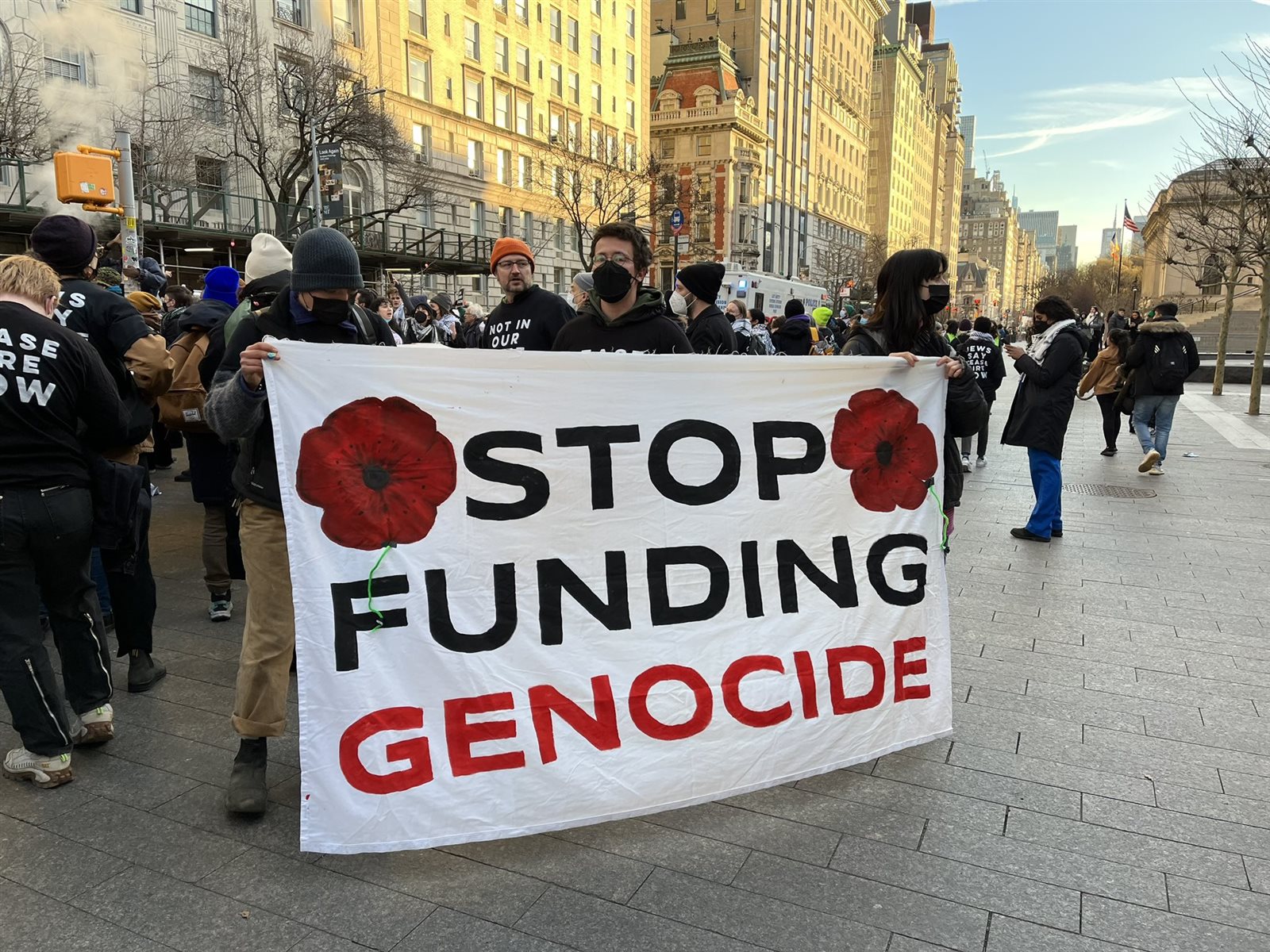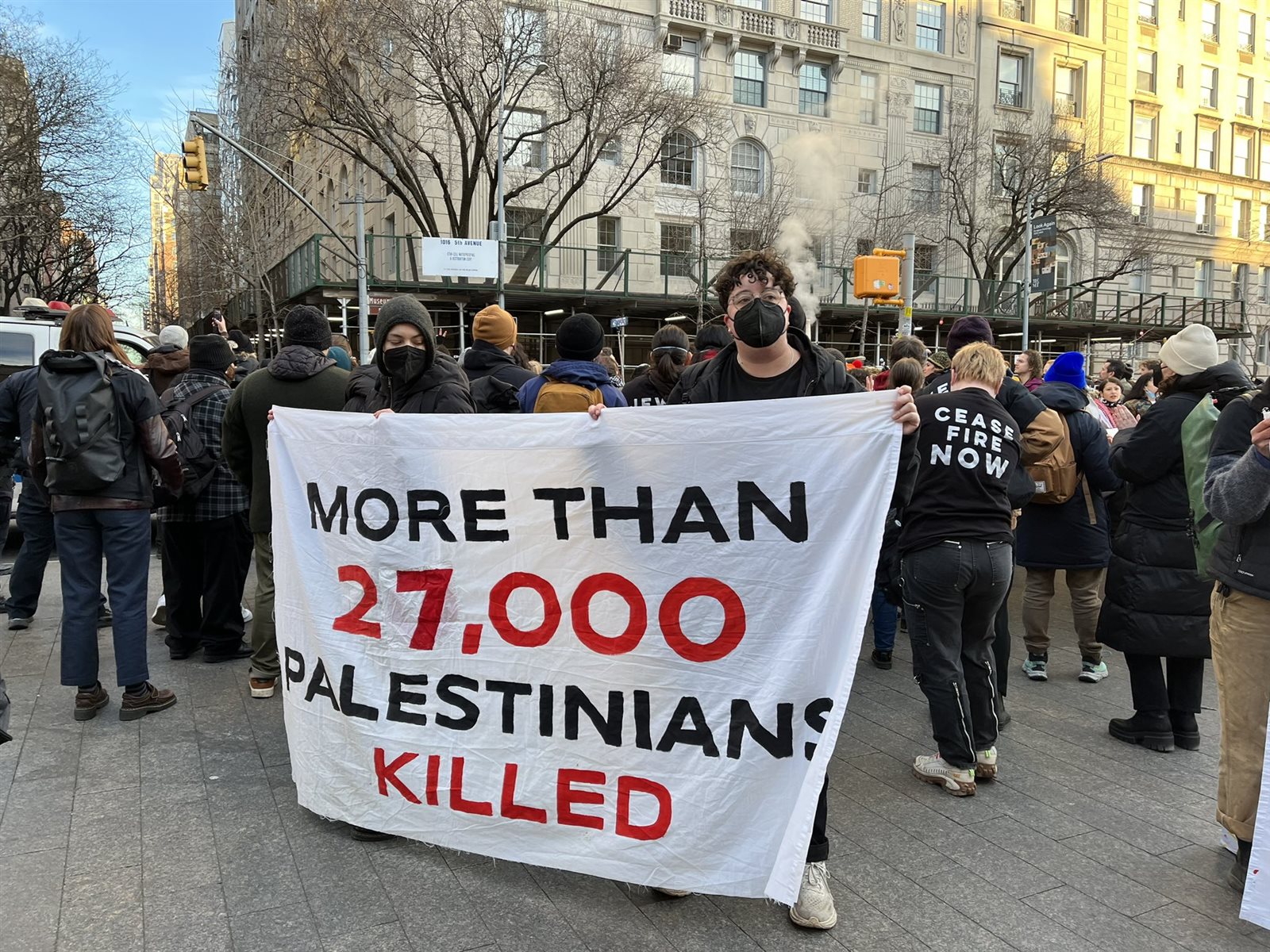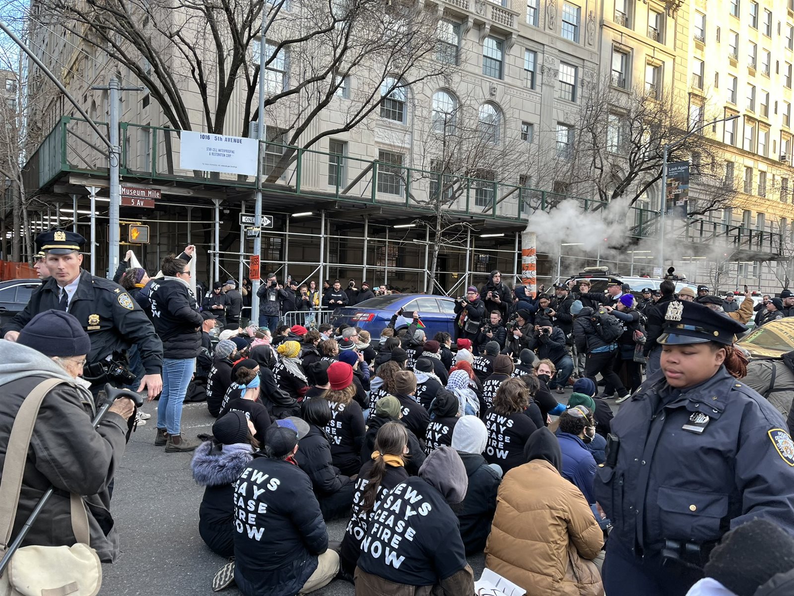 وقادت مجموعة الصوت اليهودي من أجل السلام (JVP) مظاهرة الجانب الشرقي العلوي من المدينة، حيث جلس النشطاء في تقاطع الجادة الخامسة والشارع 82، حيث كان بايدن يحضر حملة لجمع التبرعات في مكان قريب.