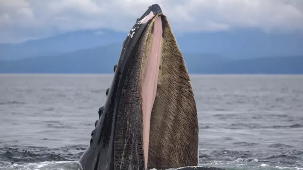 وفي نهاية المطاف، تتناوب على الاندفاع وفتح الأفواه عبر الفريسة المضغوطة، وتلتهم عشرات الآلاف من اللترات في لقمة واحدة.