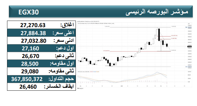 التحليل الفني لمؤشرات البورصة المصرية صباح اليوم الخميس 8-2-2024
