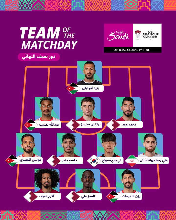 وكشفت اللجنة المنظمة لبطولة كأس آسيا عن التشكيل المثالي لدور نصف النهائي والذي شهد سيطرة للاعبين العرب.