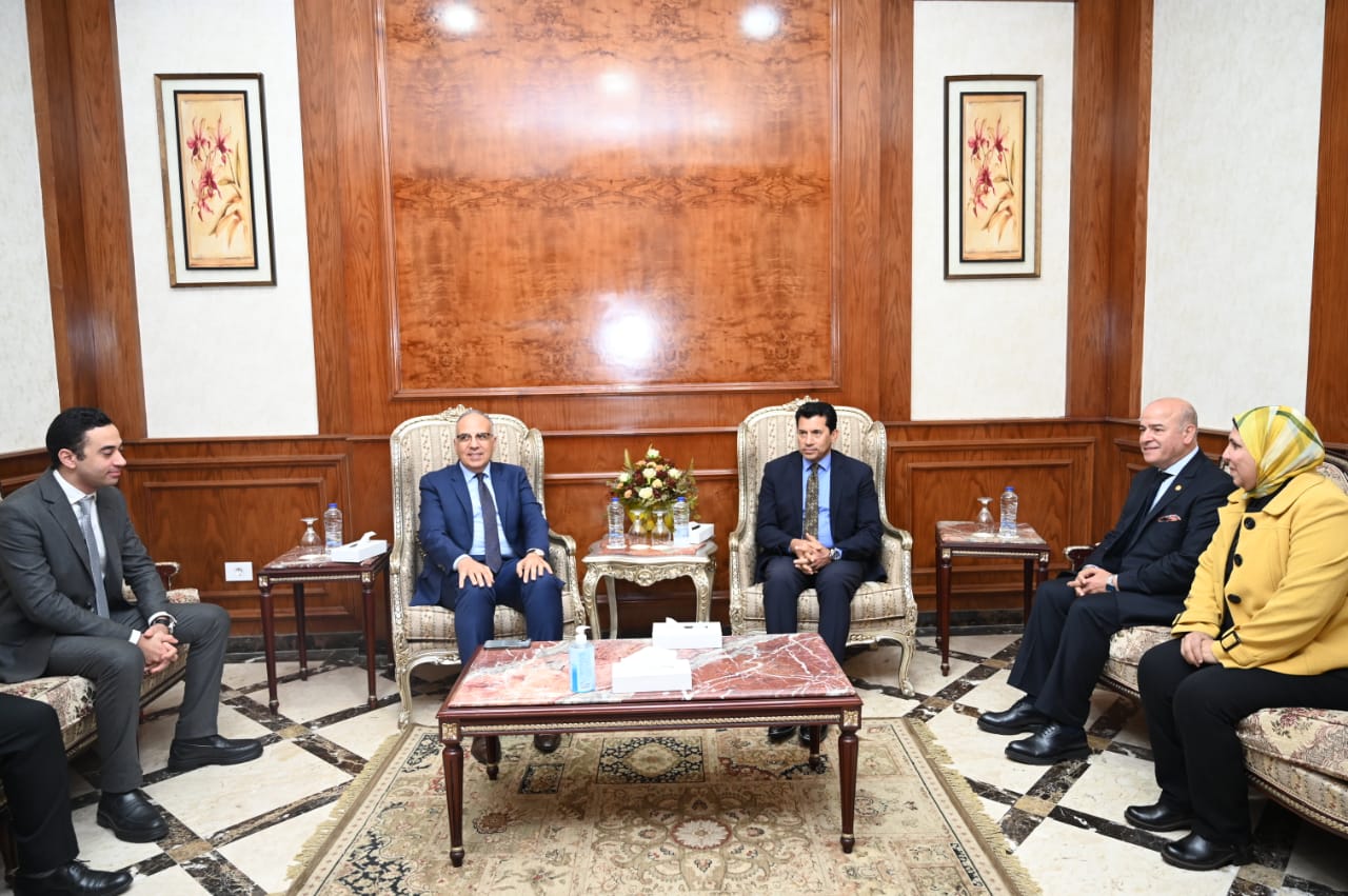 أشرف صبحي يستقبل وزير الموارد المائية والري في لقاء مع الشباب
