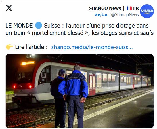 قُتل منفذ عملية احتجاز رهائن على متن قطار في سويسرا بنيران عناصر الشرطة خلال تنفيذه هجومه فيما أطلق سراح الأشخاص الذين كان يحتجزهم من دون أن يصابوا بأذى، بحسب ما أعلنت الشرطة.