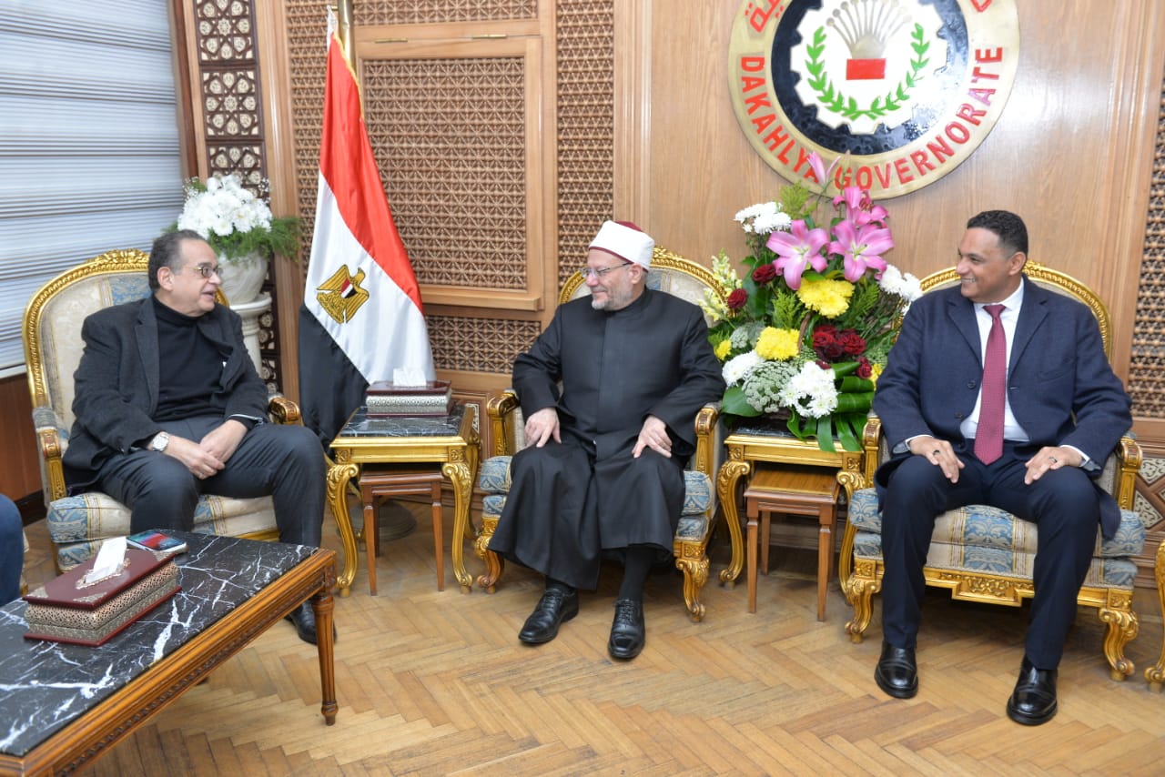 حيث استقبل الدكتور أيمن مختار محافظ الدقهلية اليوم الجمعة الدكتور شوقي علام مفتي الجمهورية، والشيخ السيد عبد المجيد رئيس الإدارة المركزية لشئون المساجد والقرآن الكريم بالإنابة عن الدكتور محمد مختار جمعة وزير الأوقاف لتقديم التهنئة بمناسبة العيد القومي للمحافظة، وأدوا صلاة الجمعة من داخل مسجد النصر بالمنصورة.