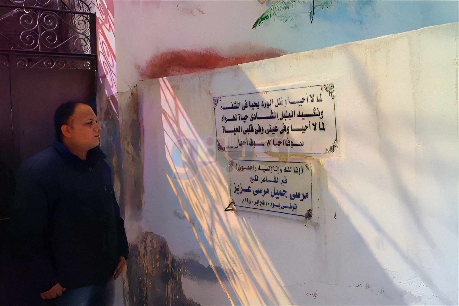 ثم انتقلنا برفقة شقيقه إلى قبره الكائن بمسقط رأسه بمدينة الزقازيق حيث فوجئنا بقصيدة سوف أحيا «لم لا أحيا وظل الورد يحيا في الشفاه.. ونشيد البـلـبـل الشـــــــادي حياة لهواه.. لم لا أحيا وفي قلبى وفي عيني الحياه.. سوف أحيا.. ســوف أحيا»..من كلمات الراحل مرسي جميل عزيز التى تعد من أروع القصائد التي شدت بها عصفورة الشرق أو جارة القدس أو شجرة الأرز كما يحب لمعجبيها أن يلقبونها "فيروز" عام 1955 ومن ألحان الأخوين رحبانى تتزين قبره.