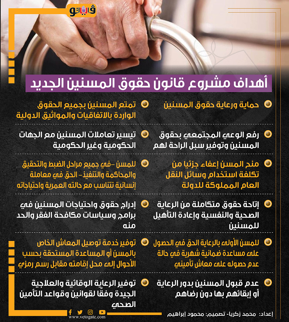 أهداف مشروع قانون حقوق المسنين الجديد (إنفوجراف) الأحد 11/فبراير/2024 - 09:23 ص 2/11/2024 9:23:44 AM حقوق المسنين، فيتو محمد زكريا شارك طباعة 18 حجم الخط شارك طباعة المواثيق الدولية حقوق المسنين رعاية حقوق المسنين رفع الوعي المجتمعي حقوق المسن مشروع قانون حقوق المسنين قانون حقوق المسن قانون حقوق المسنين وسائل النقل العام