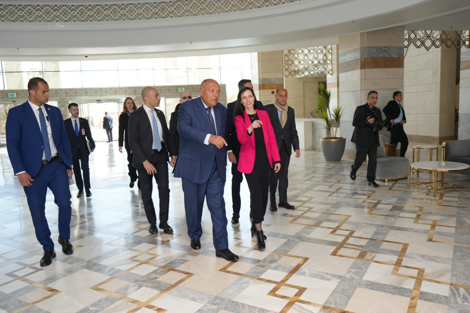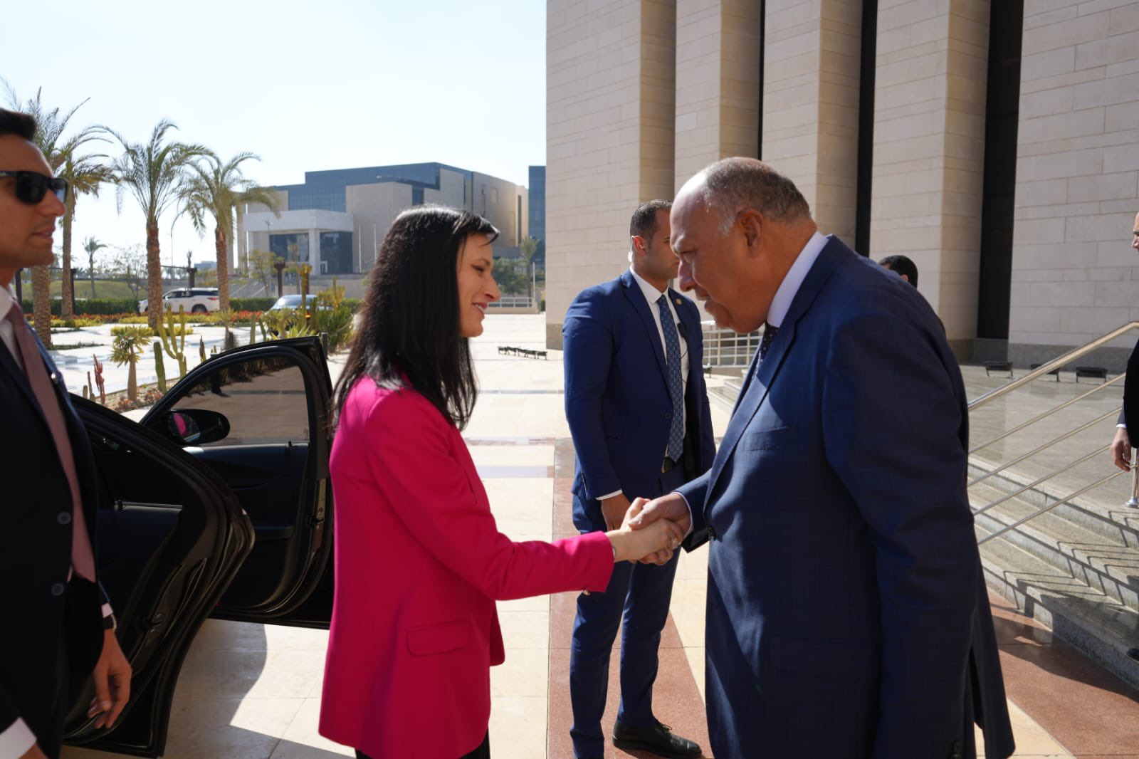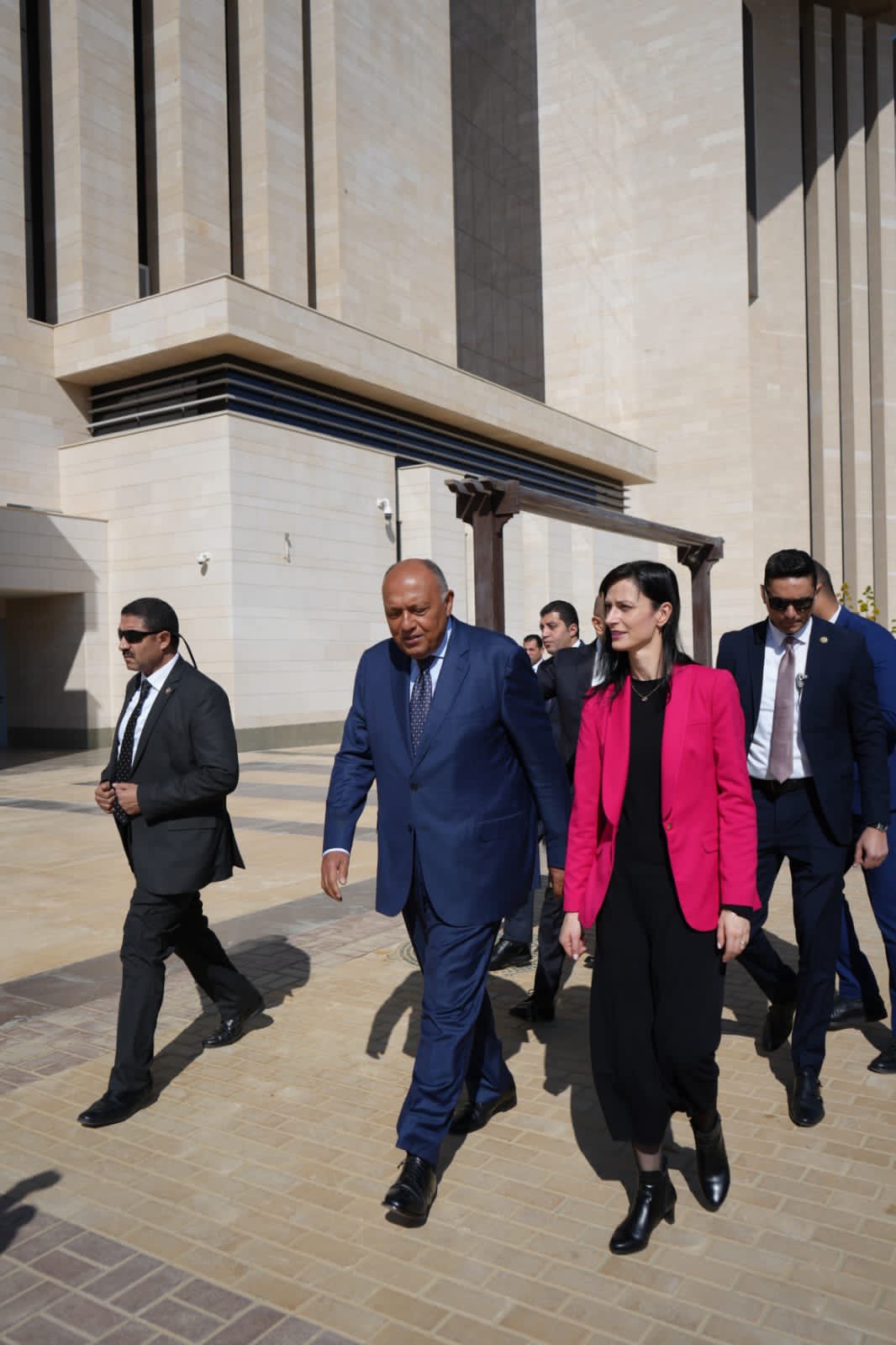 شكري يصطحب وزيرة خارجية بلغاريا مترجلا بالعاصمة الإدارية (صور)