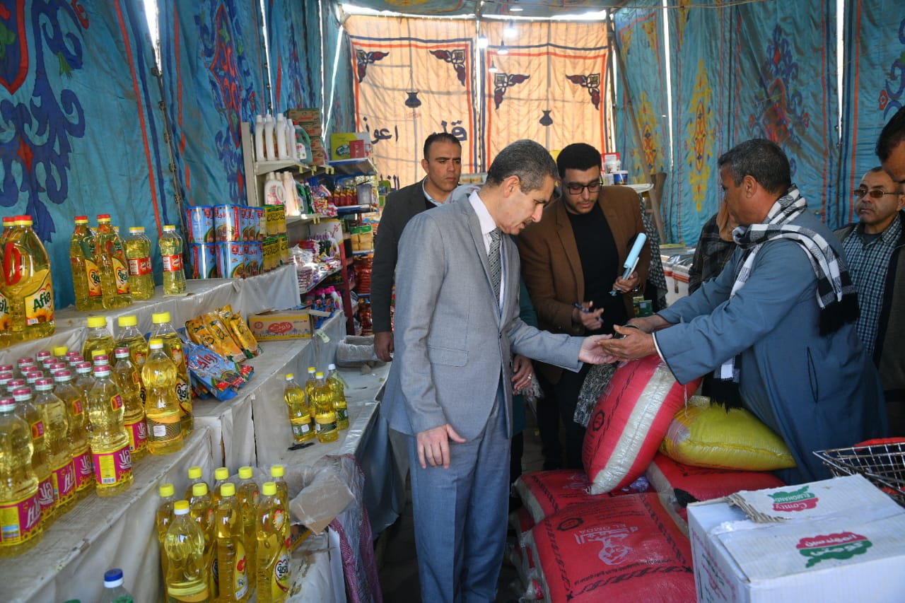 واستمرت الجولة بتفقد منافذ (معا ضد الغلاء) لبيع السلع الغذائية بأسعار مخفضة عن مثيلتها في الأسواق، حيث أطمئن المحافظ خلال الجولة على أسعار السلع المقدمة بالمعرض ك (السكر، الزيت، السمن، الأرز المكرونة، الدقيق، الخضروات والفواكه ومختلف المنتجات) والتي يتم بيعها بأسعار مخفضة بالمقارنة بمثيلاتها في الخارج وتأكد من جودتها ومدى توافرها بكميات كبيرة لتلبية احتياجات المواطنين وتسهيلا لهم في الحصول على احتياجاتهم بأسعار مناسبة، فضلا عن تفقد منافذ السيارات المتحركة لبيع السلع الإستراتيجية بأسعار مدعمة والتي تجوب أرجاء المحافظة وذلك بناء على توجيهات القيادة السياسية للدولة لتوفير السلع وتلبية احتياجات المواطنين.