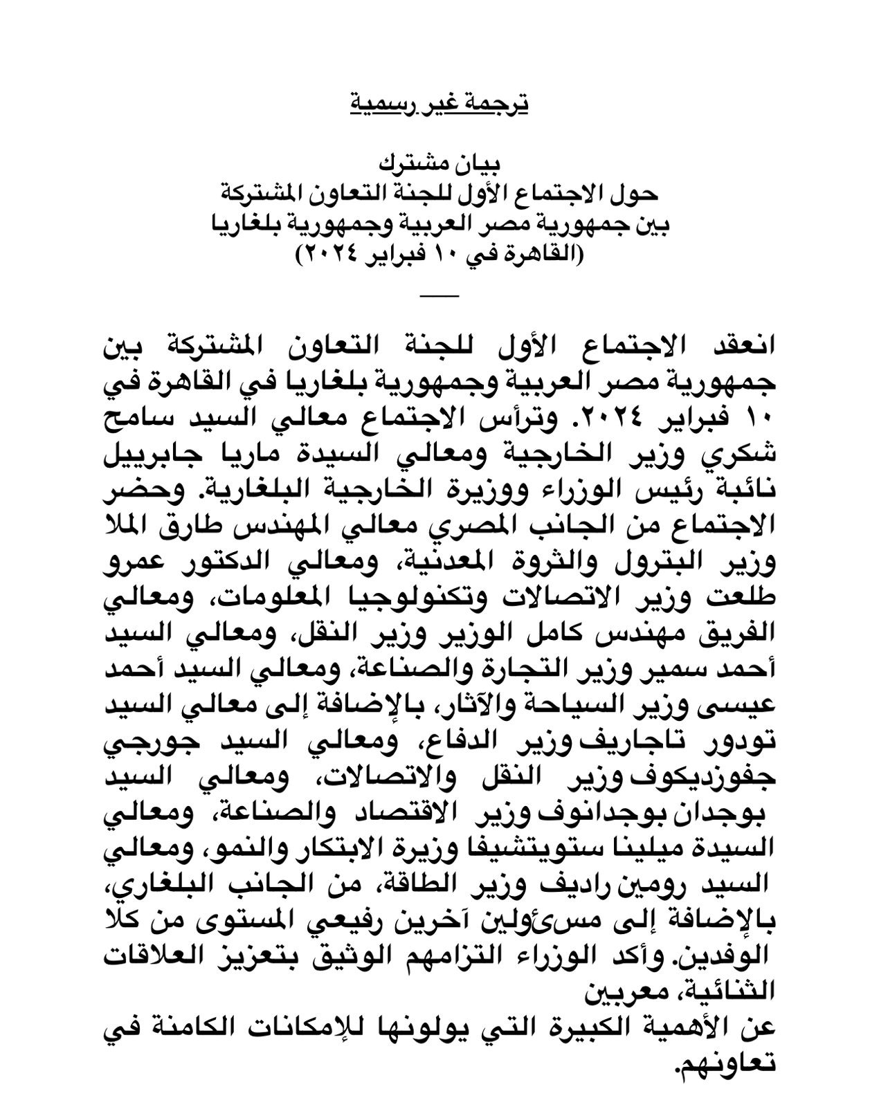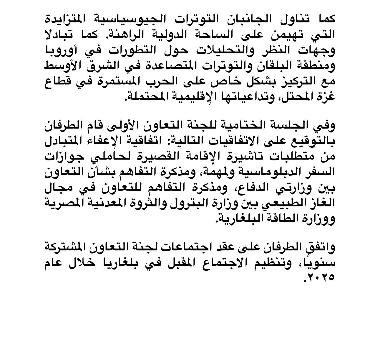 وقعت مصر وبلغاريا إتفاقية مشتركة بمقر وزارة الخارجية في العاصمة الإدارية بالقاهرة.