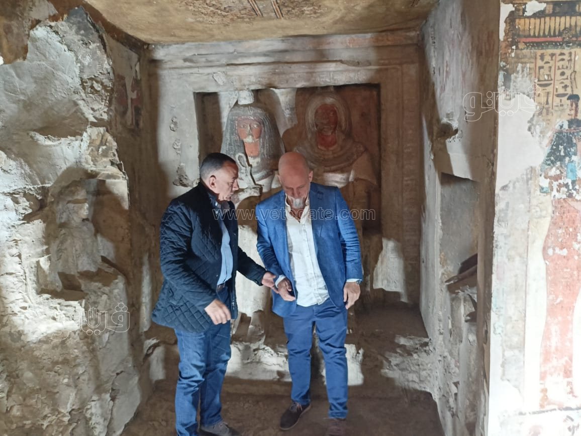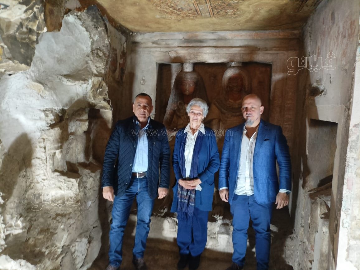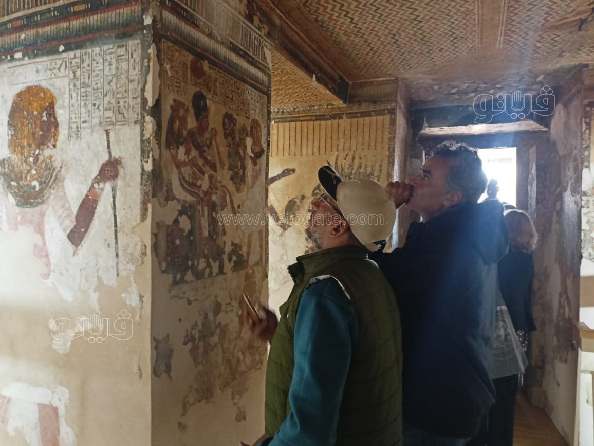 رافق الدكتور مصطفى وزيري الأمين العام للمجلس الأعلى للآثار، والبروفيسور فيوليتا بيريرا رئيس البعثة، أثناء الجولة التفقدية لمتابعة سير أعمال انتهاء الترميمات، كلا من الدكتور فتحي ياسين مدير اثار مصر العليا، والدكتور بهاء جابر مدير آثار البر الغربي، والدكتور علي رضا مدير مقابر البر الغربي، وعددًا من الوفود الأجنبية.