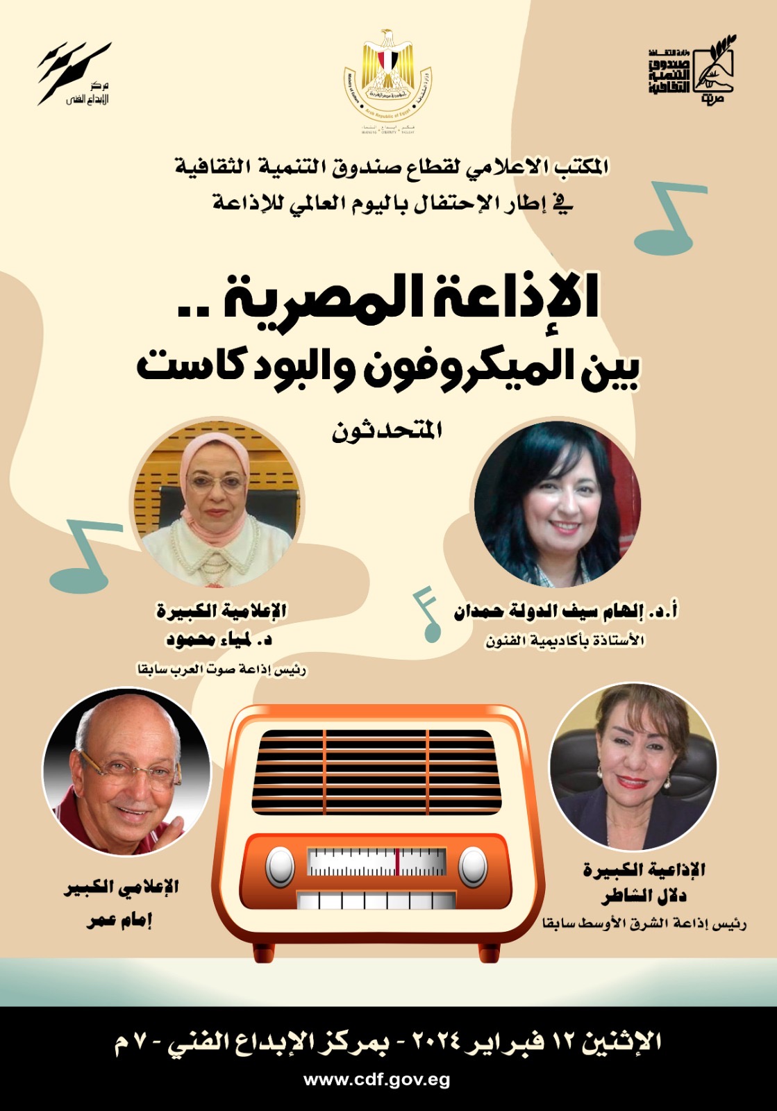 و تأتي الاحتفالية في إطار الاحتفال باليوم العالمي للإذاعة، ويشارك بها الدكتورة إلهام سيف الدولة حمدان الأستاذة بأكاديمية الفنون، والإعلامية لمياء محمود رئيس إذاعة صوت العرب سابقًا، والإذاعية دلال الشاطر رئيس إذاعة الشرق الأوسط سابقًا، والإعلامي إمام عمر.