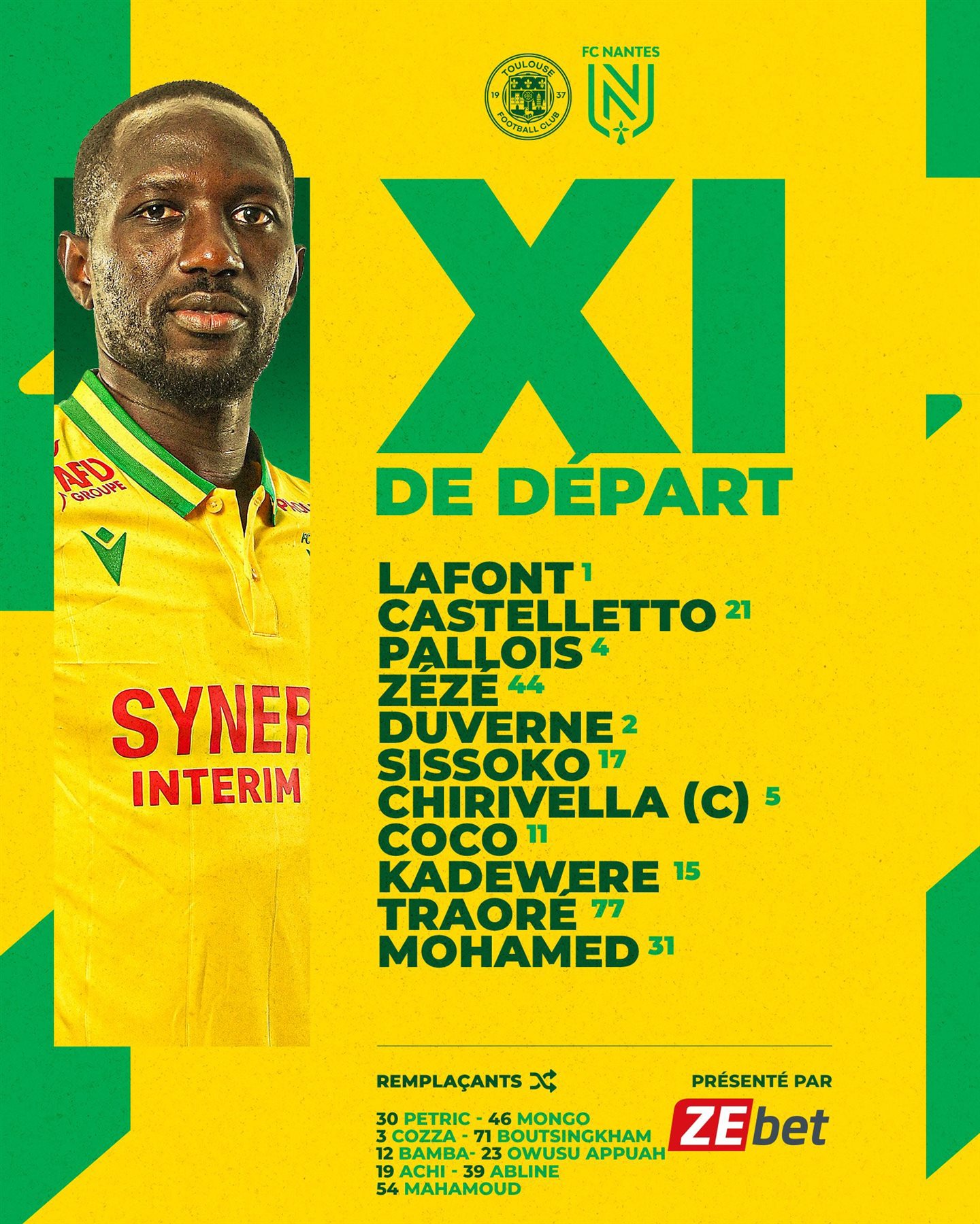 وضم تشكيل نانت لمباراة تولوز كلا من