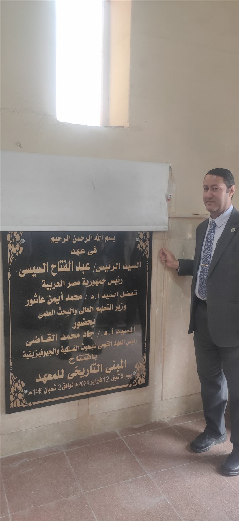 افتتح الدكتور جاد محمد القاضي رئيس المعهد القومي للبحوث الفلكية والجيوفيزيقية المبنى التاريخي للمعهد بعد الإنتهاء من أعمال تطويره والمبنى يضم المكتبة ومجموعة من المقتنيات الأثرية والأبحاث العلمية الخاصة ببحوث الفضاء والفلك.