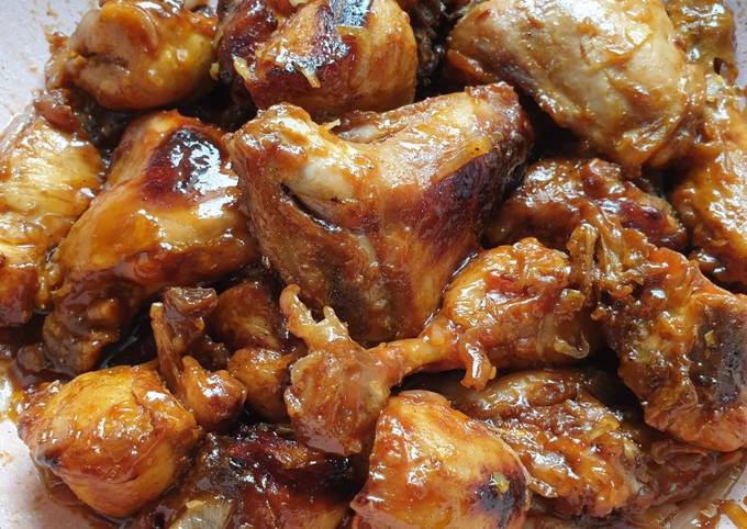 - في تلك الأثناء يقلب معجون الثوم والزنجبيل مع الصويا صوص وصلصة الفلفل الحارة وصلصة الفلفل الحار والحلو والعسل.