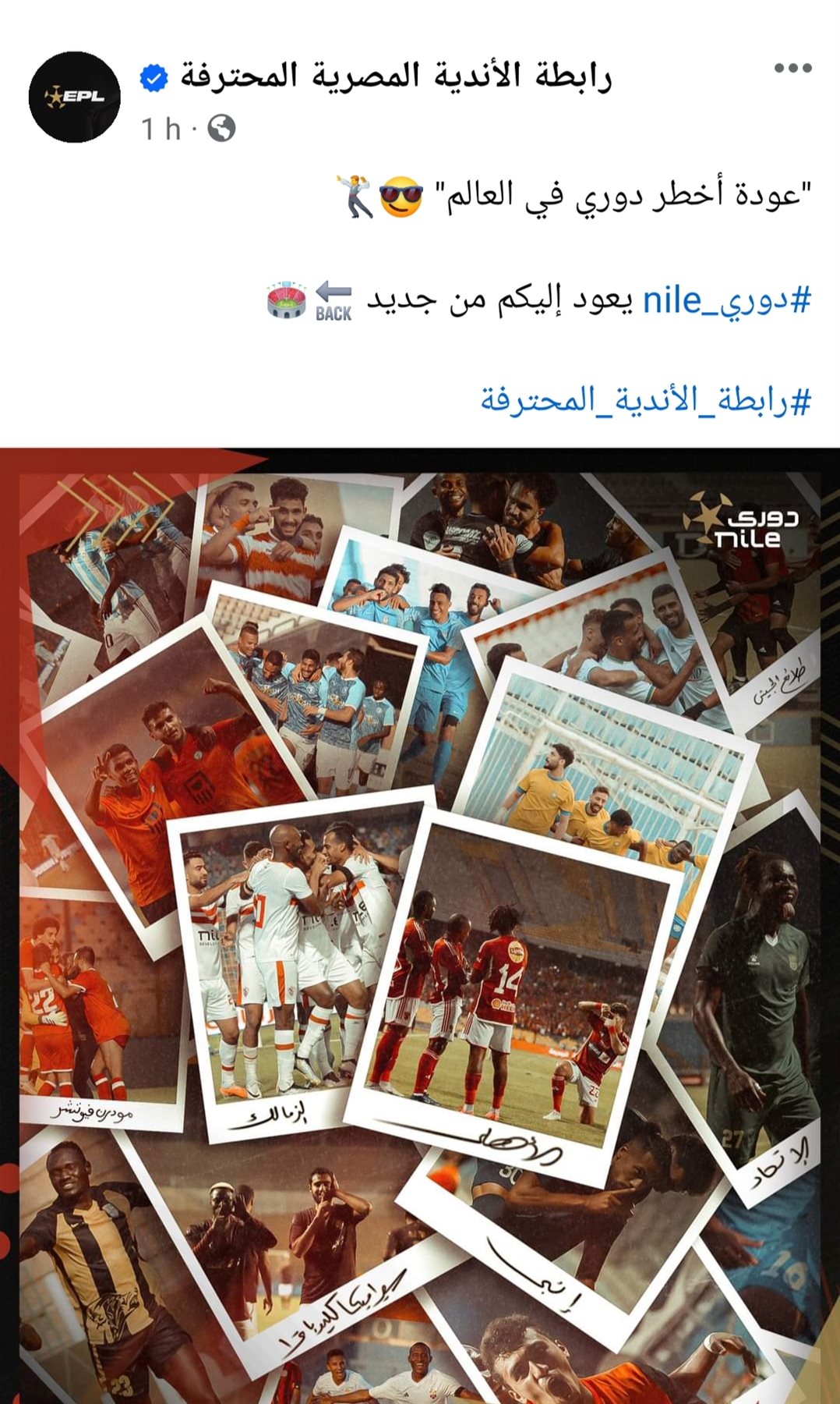 كأس مصر، واصلت صفحة رابطة الأندية المصرية المحترفة السير عكس التيار بعد أن نشرت عبر منصاتها الرسمية علي مواقع التواصل الاجتماعي إعلان بشأن عودة الدوري الممتاز من جديد وزينت الإعلان بشعار:عودة أخطر دوري في العالم!