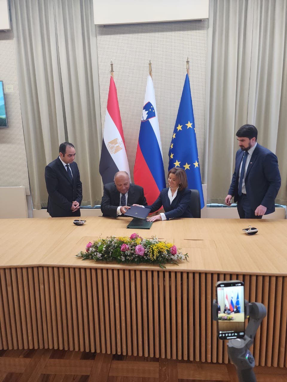 وأشاد الوزير شكري خلال لقائه بنظيرته السلوفينية بالعلاقات الثنائية المتميزة، مؤكدًا رغبة الجانب المصري في تطويرها، خاصةً وأن مصر هي أول دولة عربية وأفريقية تعترف بسلوفينيا عقب استقلالها، ولا تزال مصر الدولة العربية والأفريقية الوحيدة التي لديها تمثيل مقيم بلوبليانا منذ ٢٠٠٧.
