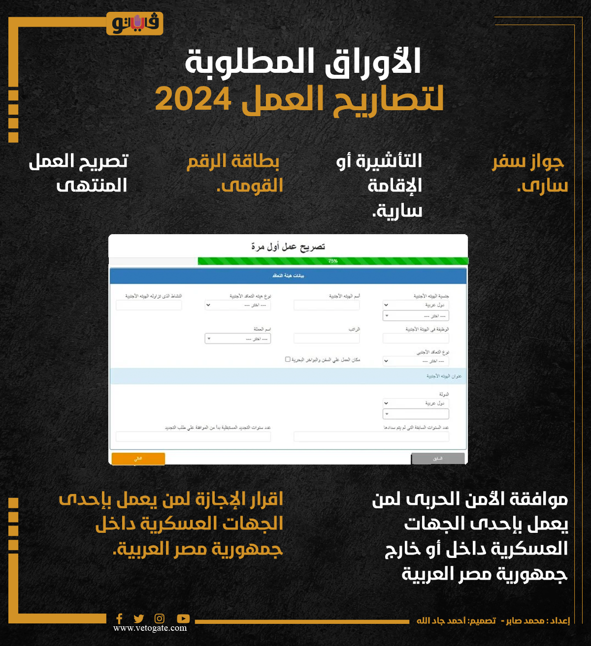 الأوراق المطلوبة لتصاريح العمل 2024 (إنفوجراف) الأربعاء 14/فبراير/2024 - 03:11 م 2/14/2024 3:11:11 PM الأوراق المطلوبة لتصاريح العمل 2024، فيتو محمد صابر شارك طباعة 18 حجم الخط شارك طباعة استخراج تصريح عمل في نفس اليوم استخراج تصريح العمل لأول مرة الأوراق المطلوبة لاستخراج تصريح العمل للسفر الأوراق المطلوبة لتجديد تصريح العمل تجديد تصريح العمل للعاملين بالخارج تصريح العمل للمسافرين مكان استخراج تصريح العمل أسباب رفض تصريح العمل