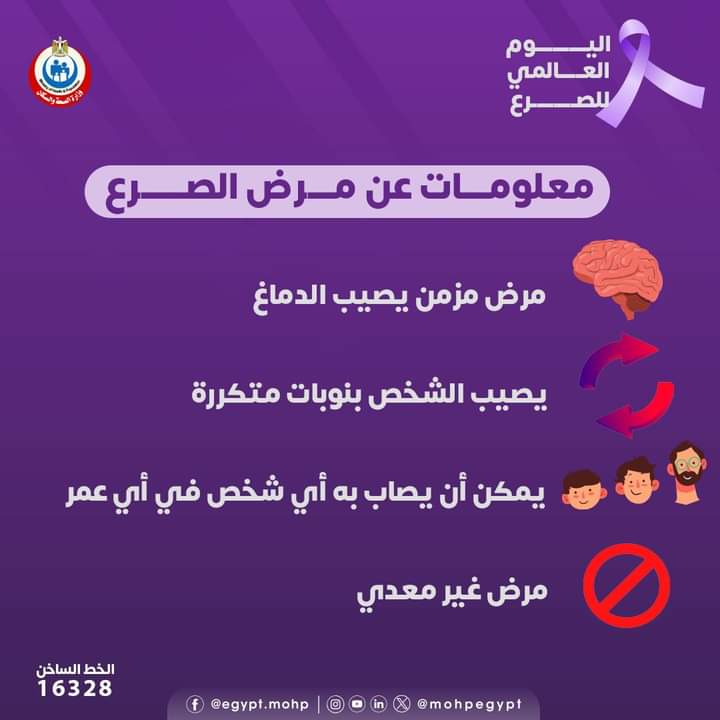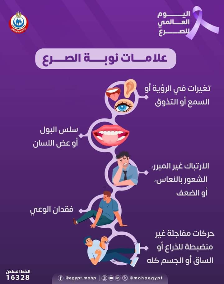 وأوضحت وزارة الصحة أن نوبات الصرع يصاحبها فقدان الوعي وفقدان التحكم في وظائف الأمعاء والمثانة